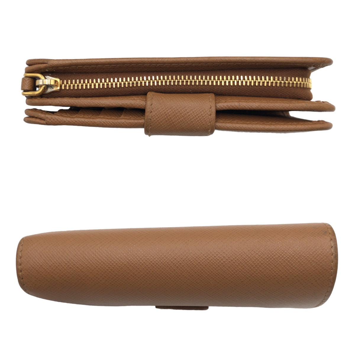 PRADA Prada Saffiano Brown Gold Hardware Leather 1ML225 Bi-fold Wallet Billfold Women's
