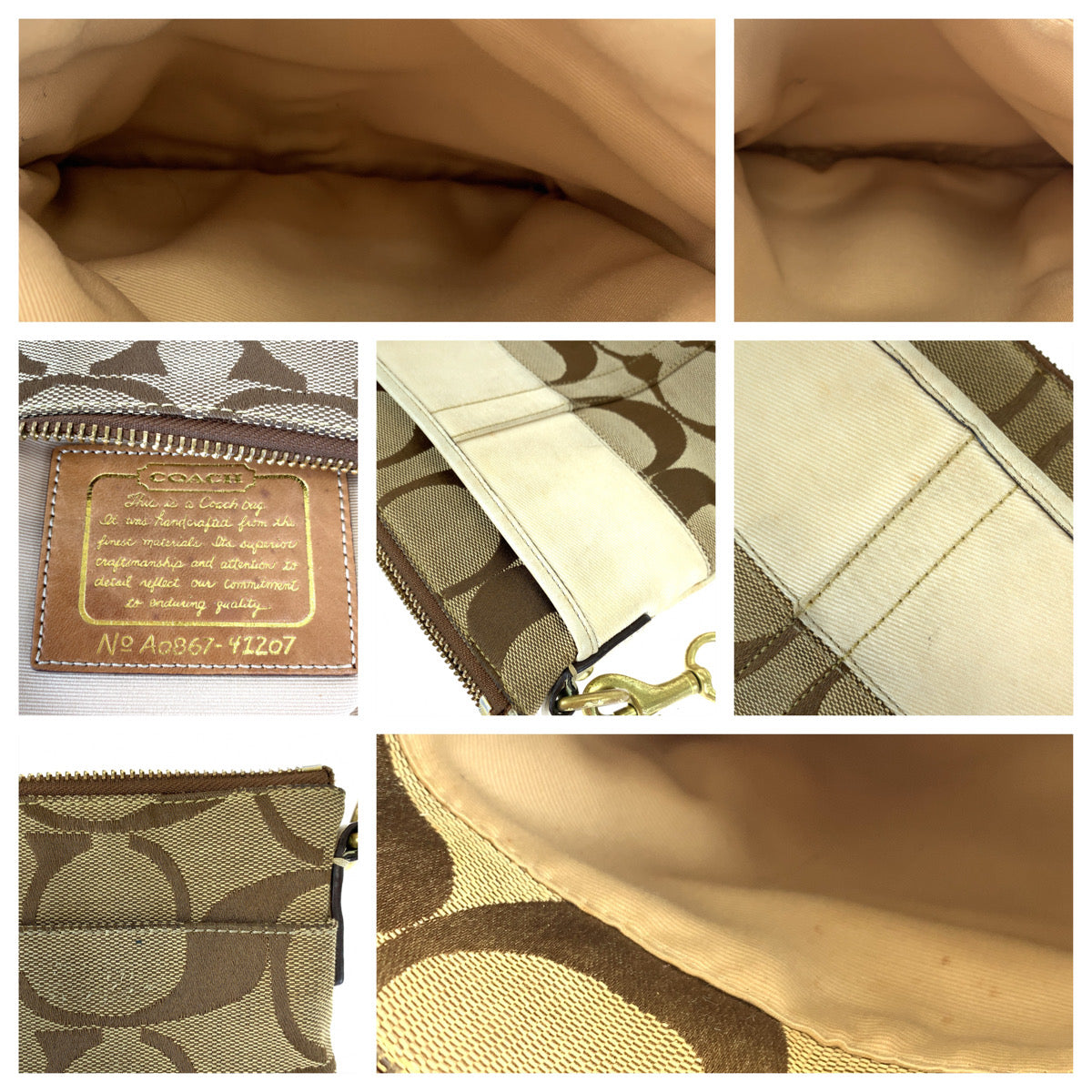 12669 COACH Signature Stripe Solid Swing Pack Brown Gold Hardware Canvas/Leather 41207 Shoulder Bag Pochette Crossbody Bag for Women