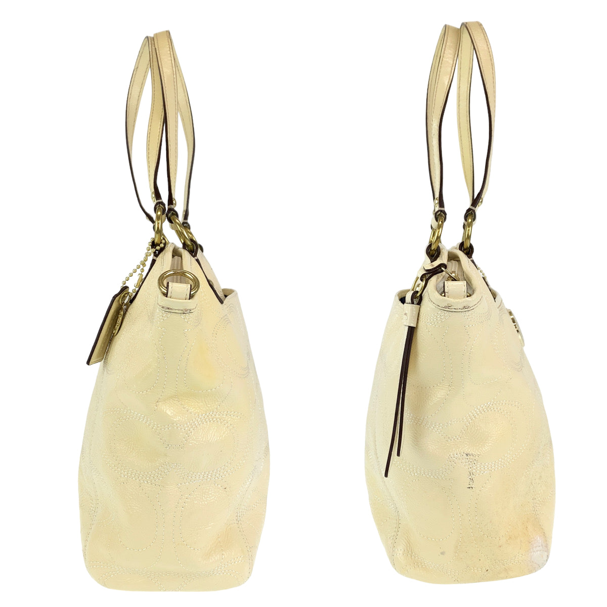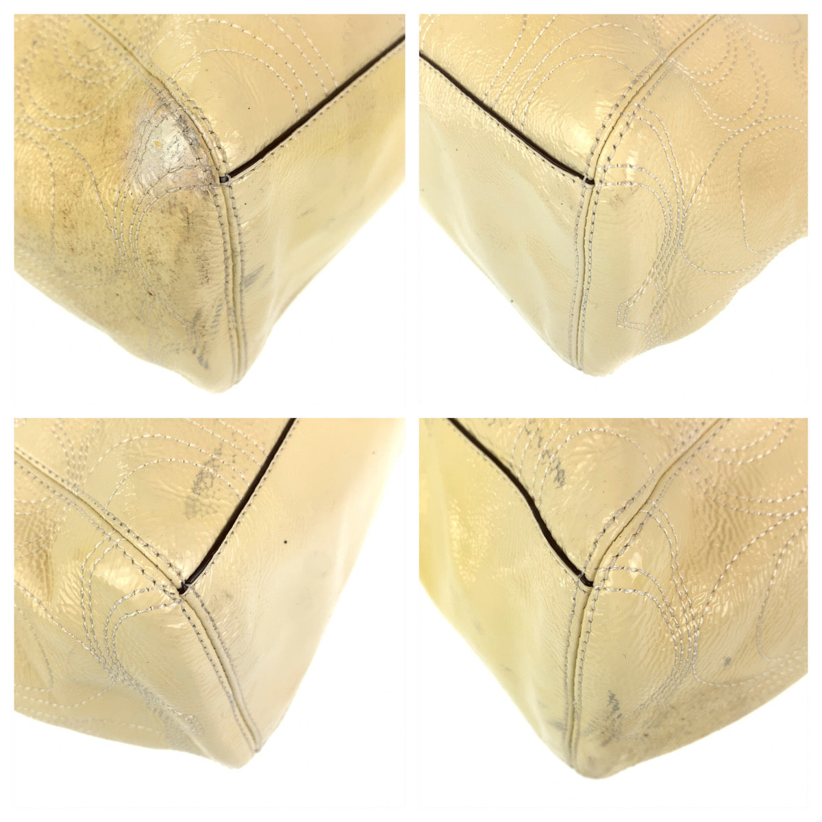 12667 COACH Signature Cream Beige Enamel F19197 2way Shoulder Bag Tote Bag Crossbody Bag for Women