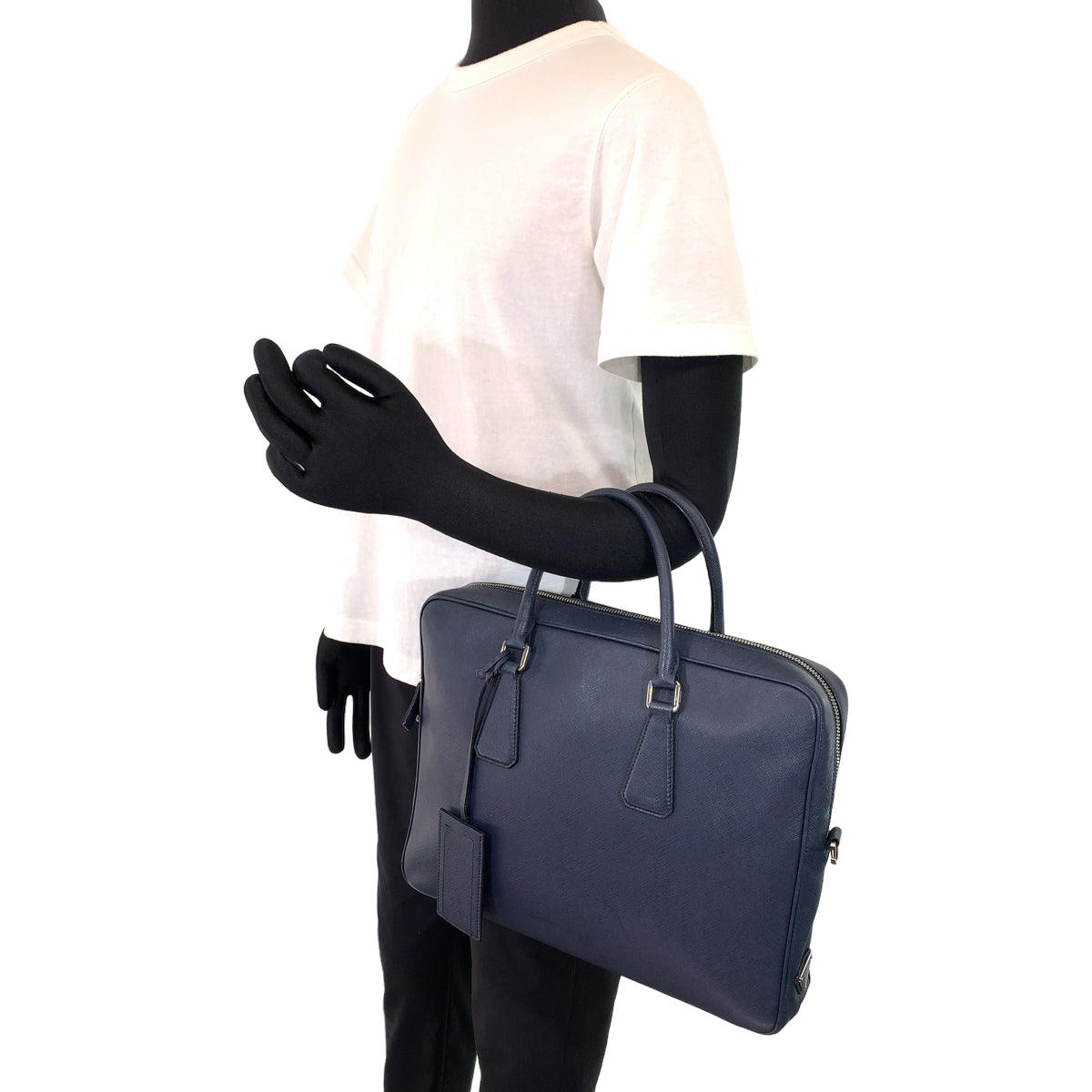 PRADA Prada Saffiano Navy Blue Leather Business Bag Briefcase Briefcase Business Bag for Men