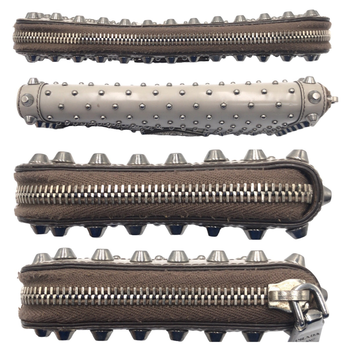 PRADA Prada Studs Grey Silver Hardware Leather 1M0506 Long Wallet for Women