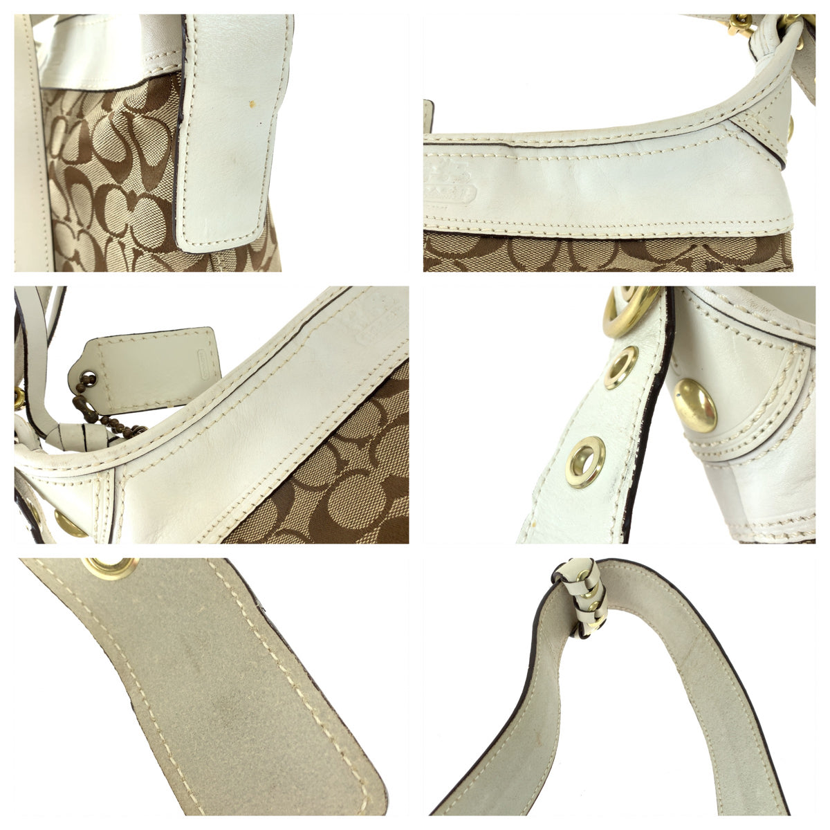 12582 COACH Signature Duffle Beige White Canvas/Leather 11437 Hobo Shoulder Bag Crossbody Bag for Women
