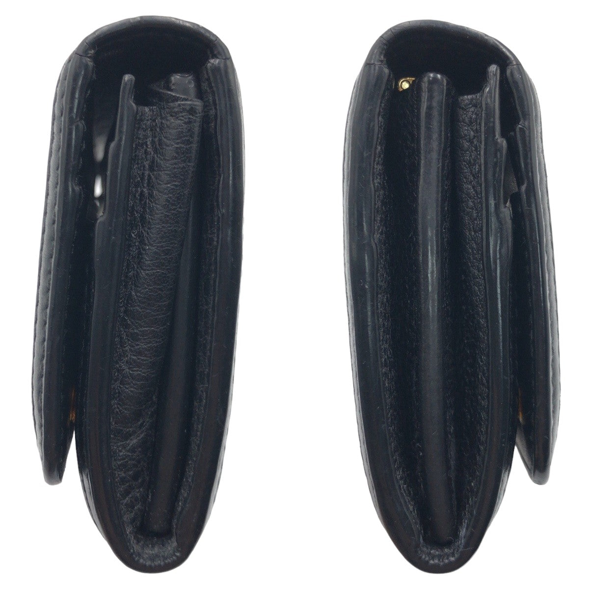 PRADA Vitello Dino Unisex Black Gold Hardware Leather Long Wallet Women's