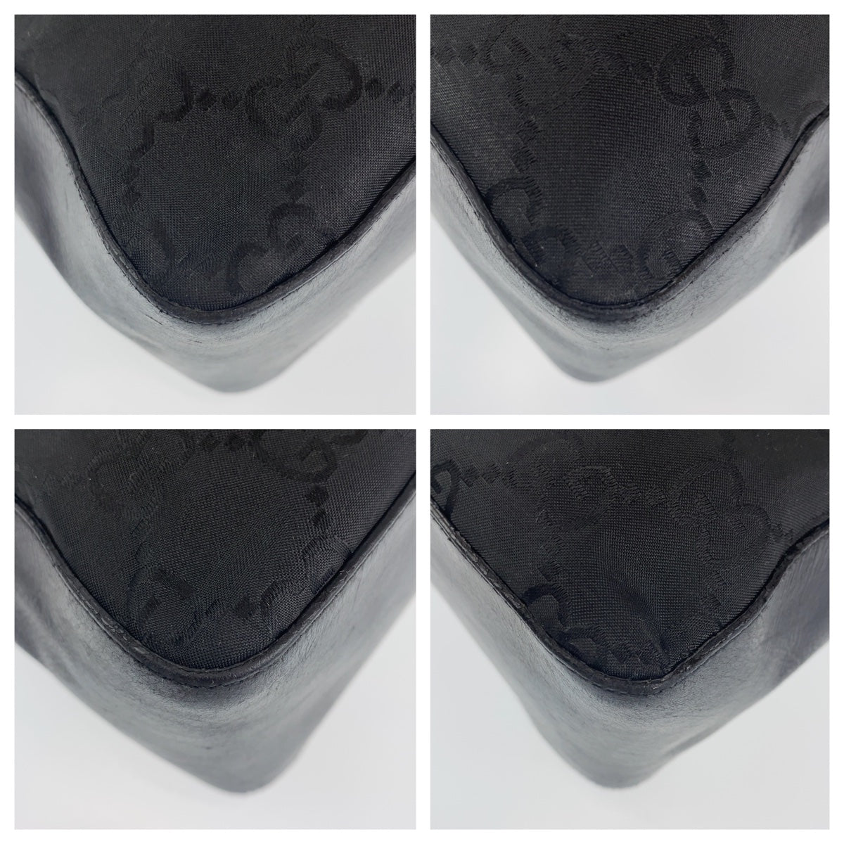 10450 GUCCI Gucci Hobo Black Silver Hardware GG Canvas/Leather 13766 Hobo Shoulder Bag Handbag Women's
