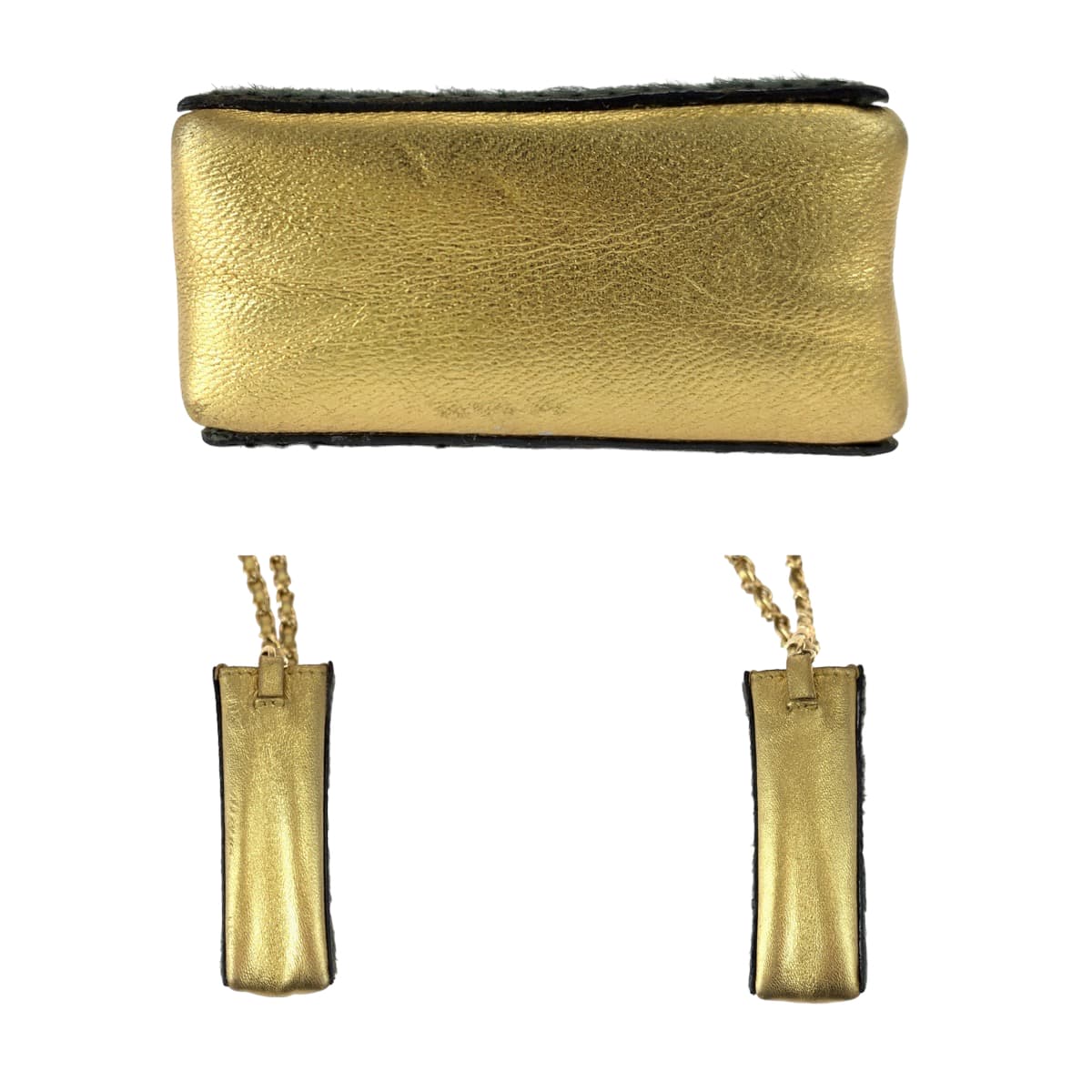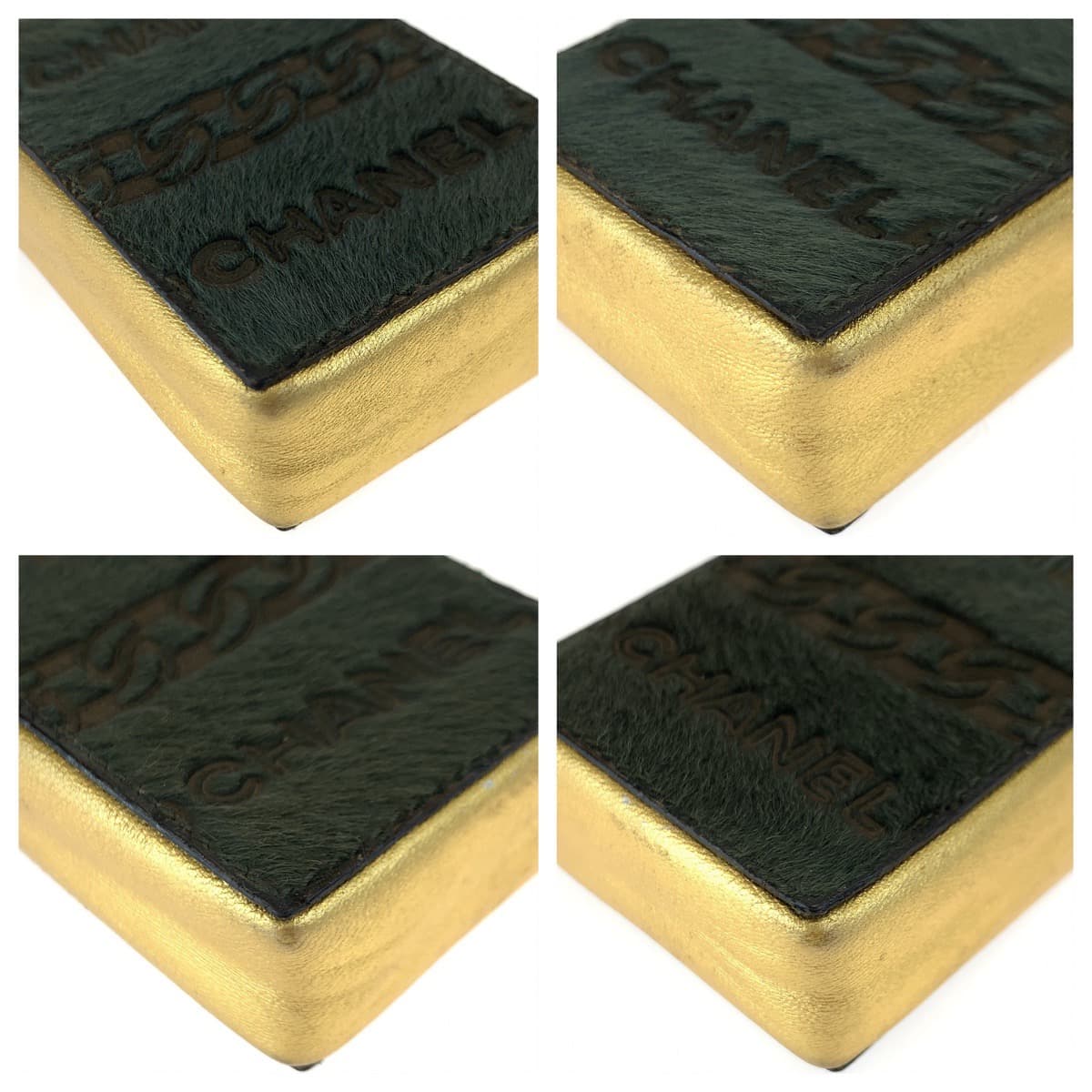 10461 CHANEL Vintage Coco Mark Khaki Gold Pony/Leather Chain Shoulder Bag Cigarette Case Pouch Women's