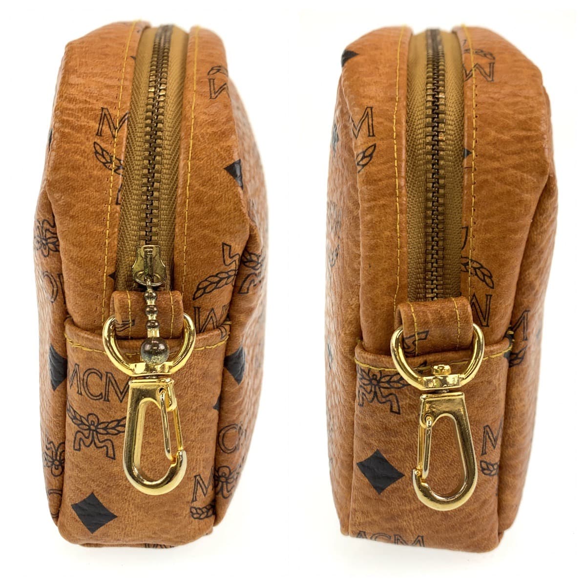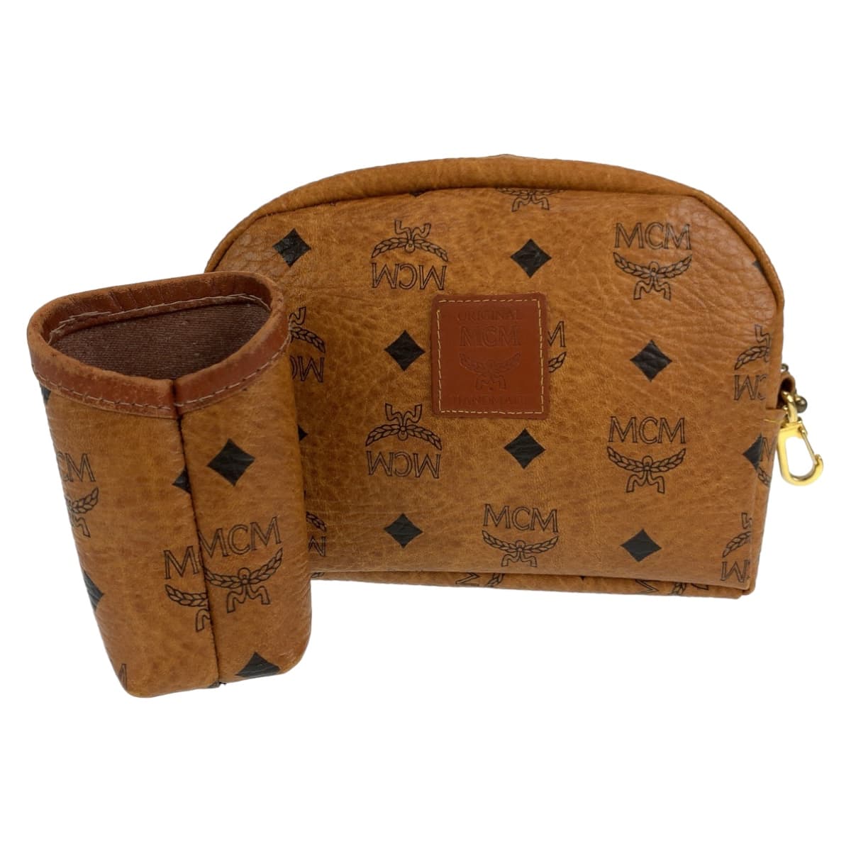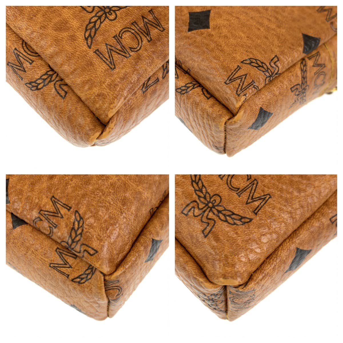 10474 MCM Vintage Visetos Cognac Brown Gold Hardware Leather Crossbody Shoulder Bag Pochette for Women
