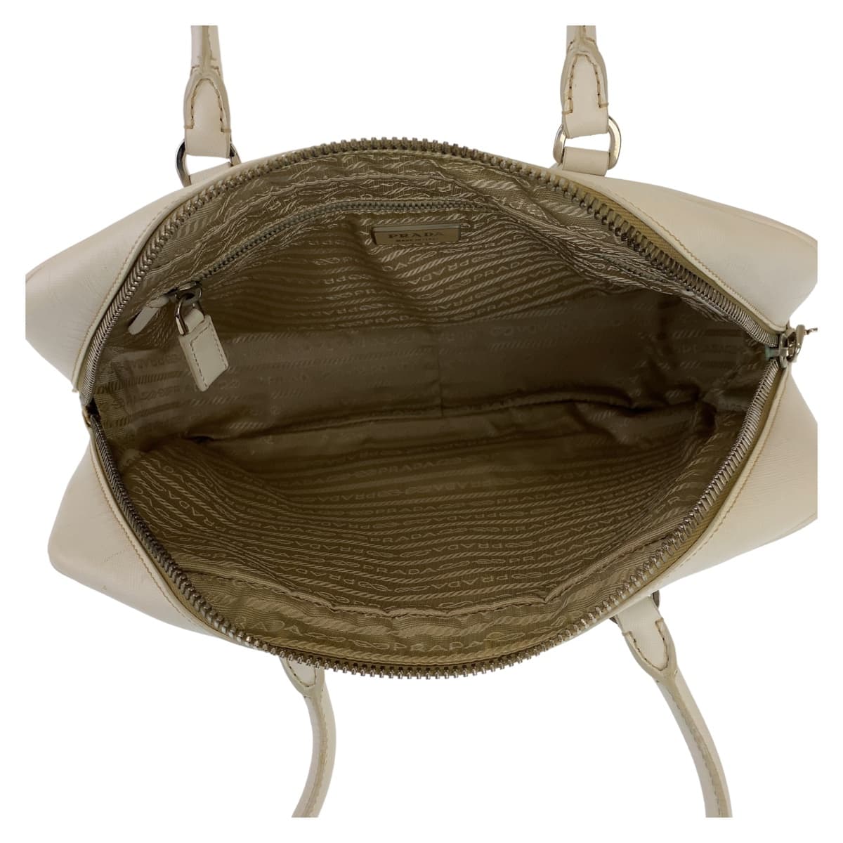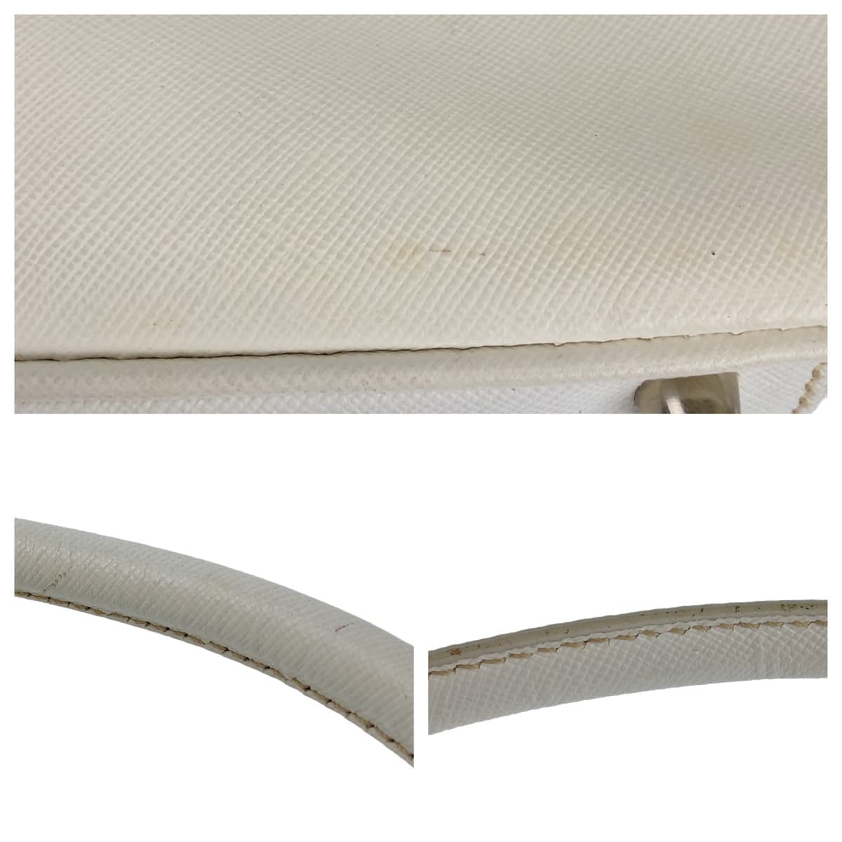 PRADA Saffiano Triangle Logo Plate White Silver Hardware Leather Shoulder Bag for Women