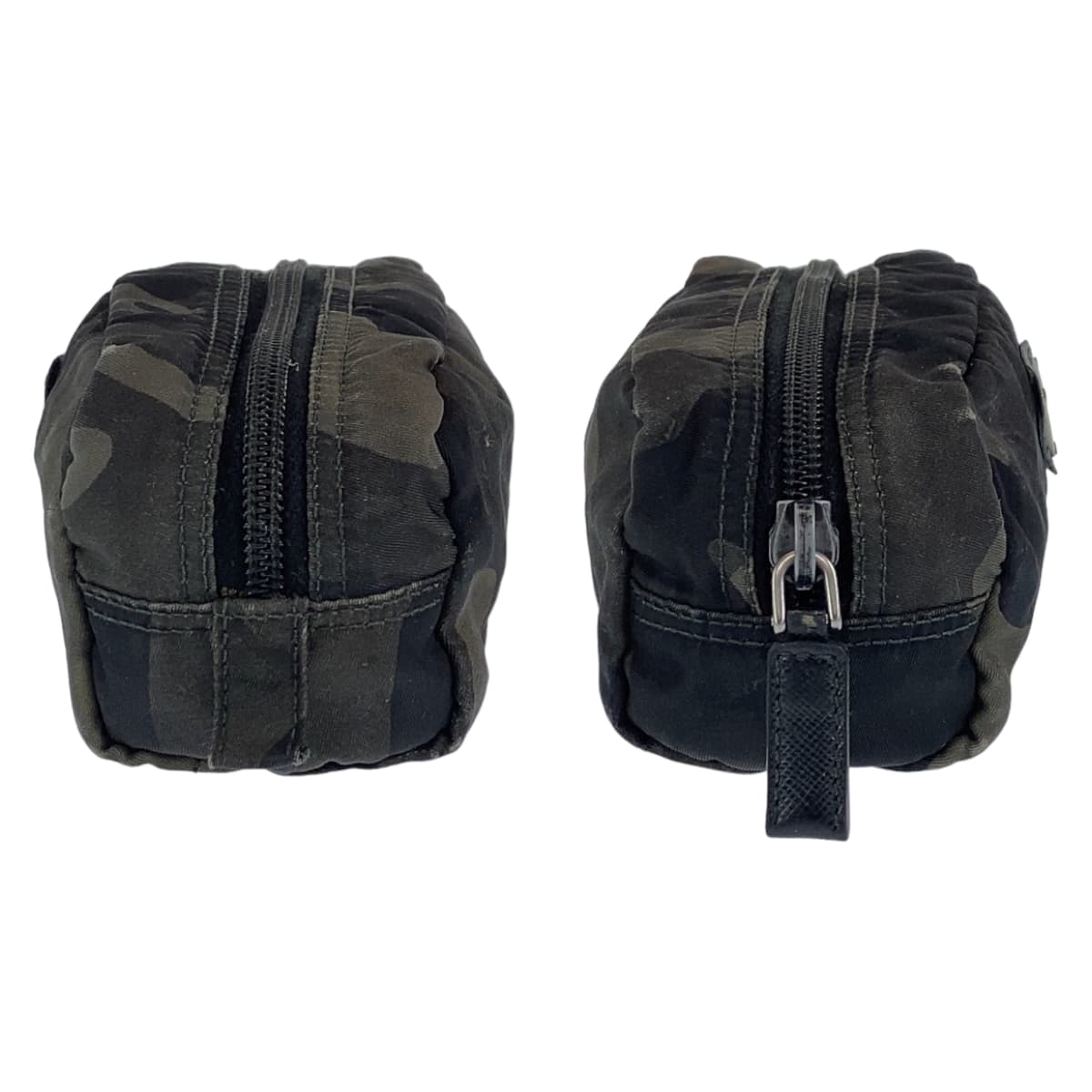 PRADA Prada Triangle Logo Tessuto Khaki Camouflage Nylon Pouch Makeup Pouch for Women