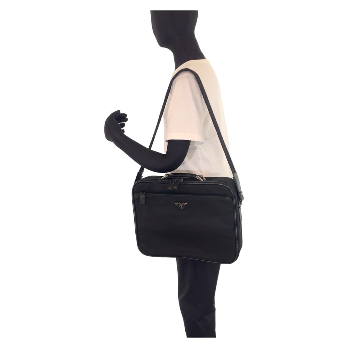 PRADA Tessuto Triangle Logo Black Silver Hardware Nylon Briefcase A4 Size 2WAY Men's