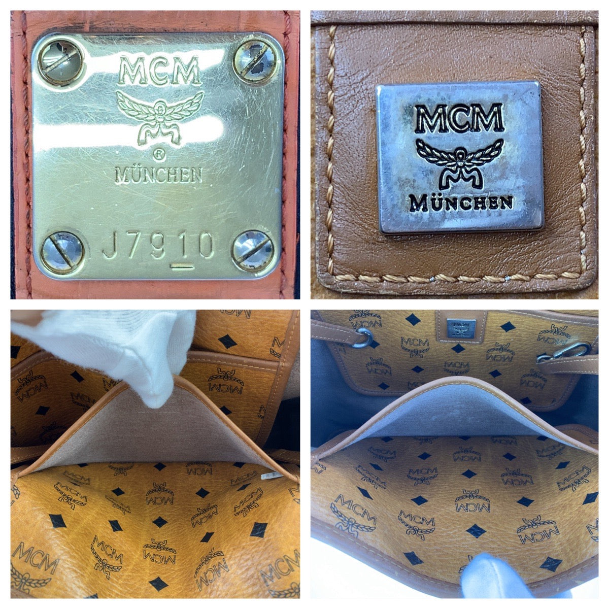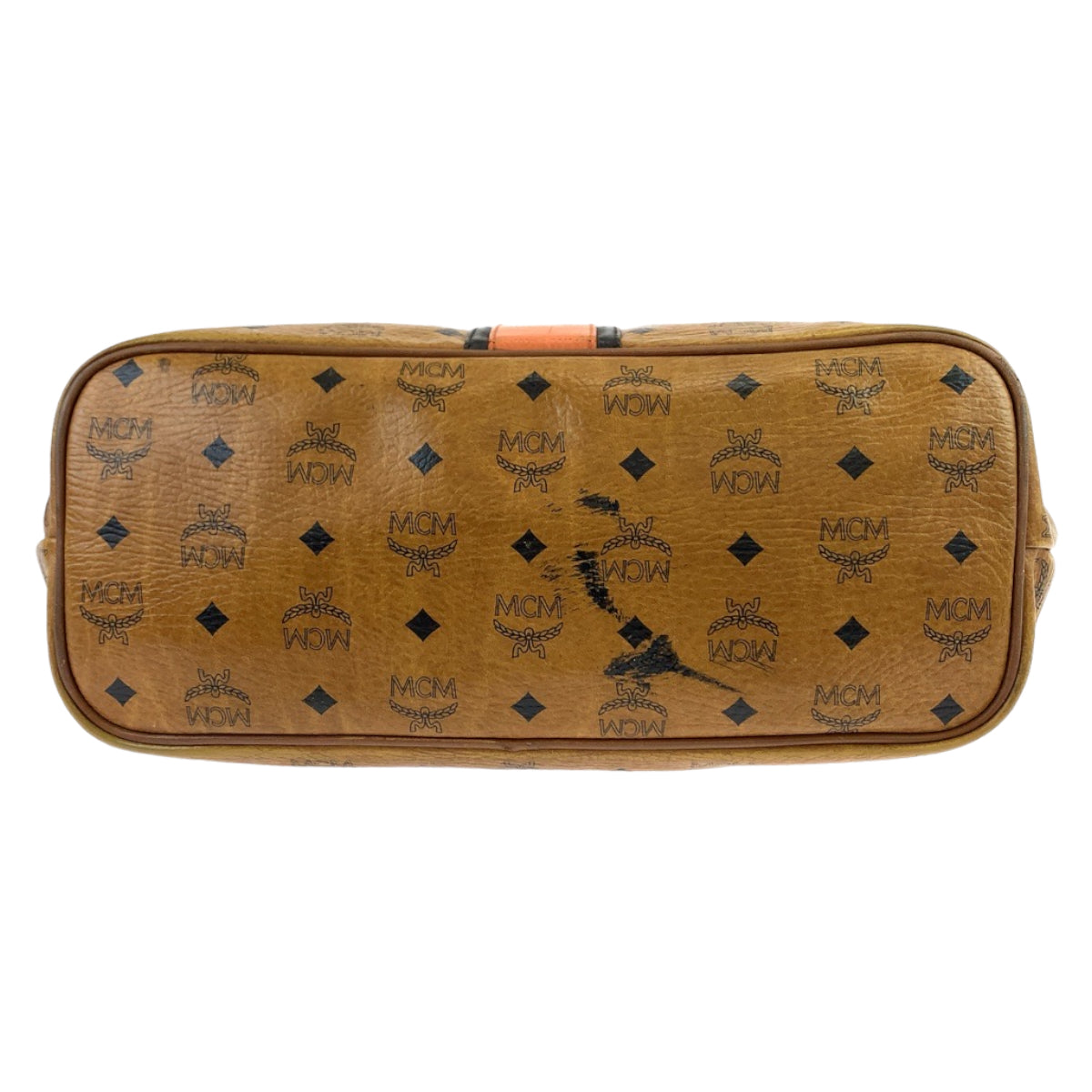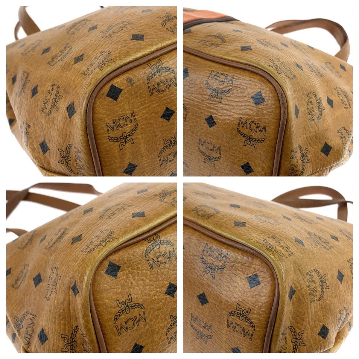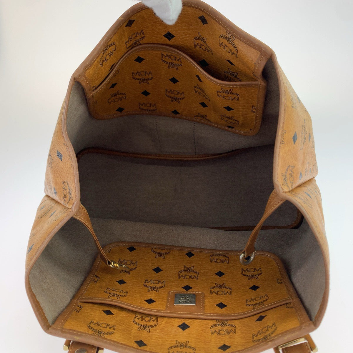 MCM Visetos unisex brown camel gold hardware leather shoulder bag tote bag for women