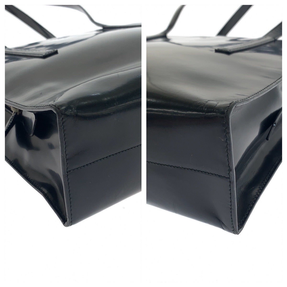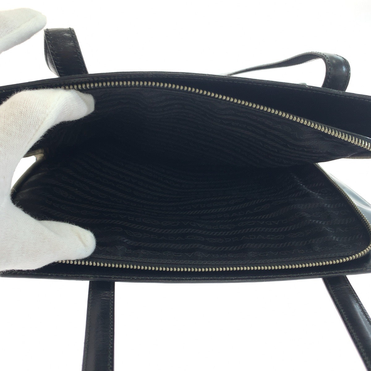 PRADA Prada Logo Embossed Black Silver Hardware Enamel B6010 Tote Bag Shoulder Bag Women's