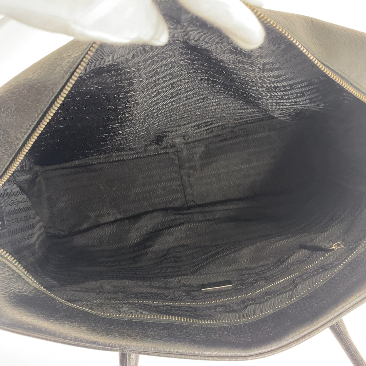 PRADA Prada Triangle Logo Plate Black Silver Hardware Leather Tote Bag Business Bag Men's