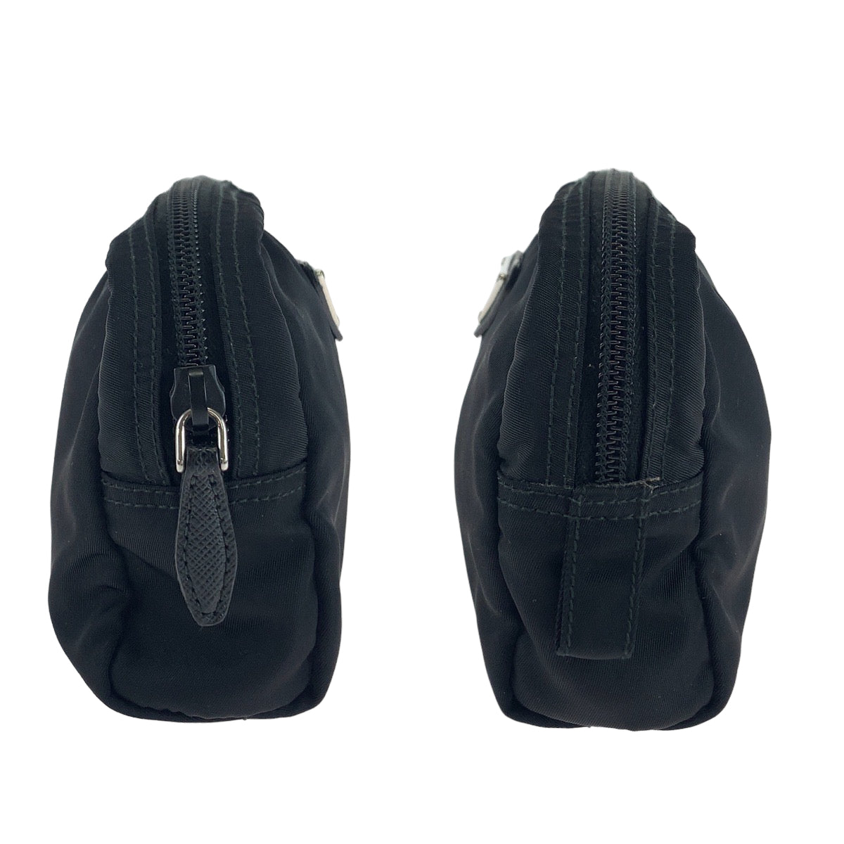 PRADA Prada Tessuto Triangle Logo Plate Black Silver Hardware Nylon Makeup Pouch Pouch Women's