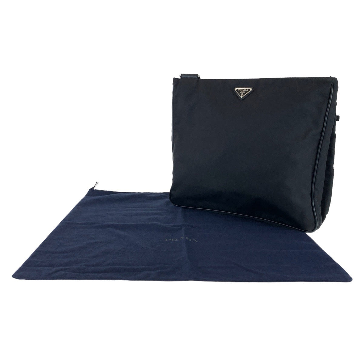 PRADA Tessuto Triangle Logo Plate Unisex Black Silver Hardware Nylon Shoulder Bag Messenger Bag Crossbody Bag Men's