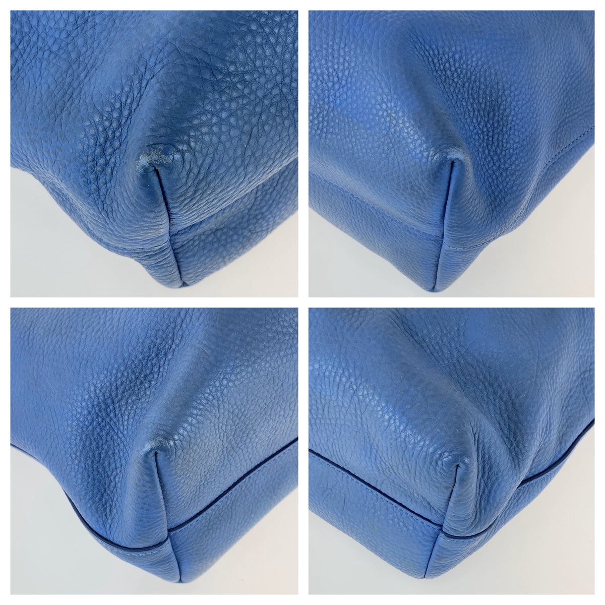 PRADA Vitello Dino unisex blue gold hardware leather tote bag shoulder bag 2way ladies