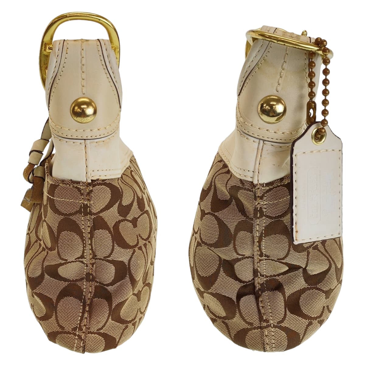 12161 COACH Signature Beige White Gold Hardware Canvas/Leather Shoulder Bag Pochette Crossbody Bag for Women