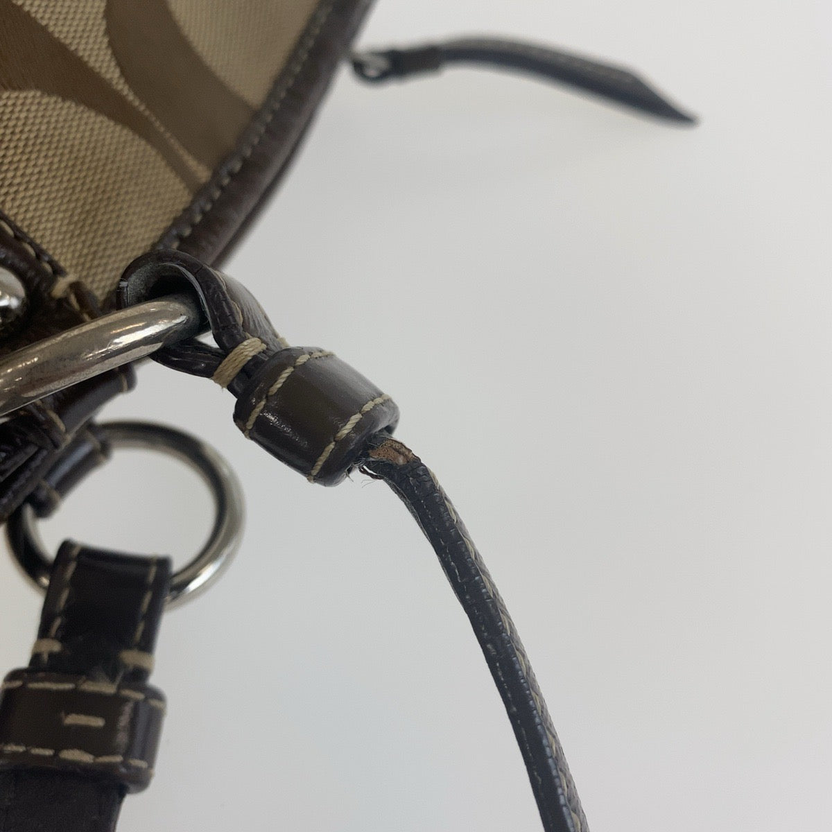 12086 COACH Signature Brown Beige Silver Hardware Canvas/Leather Tote Bag Shoulder Bag for Women