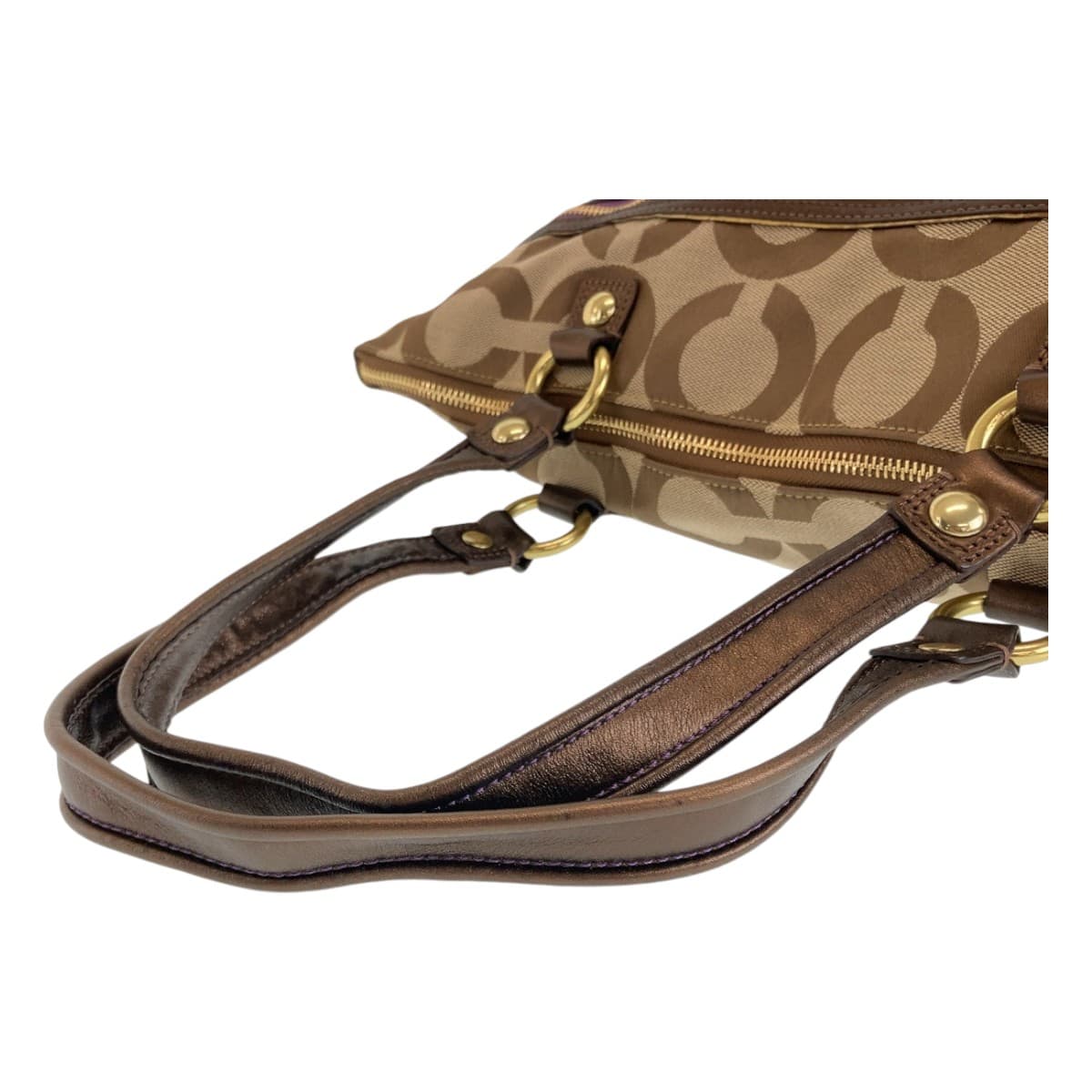 12003 COACH Op Art Beige Purple Gold Hardware Canvas Tote Bag Shoulder Bag Women's