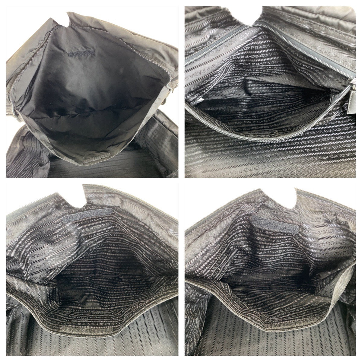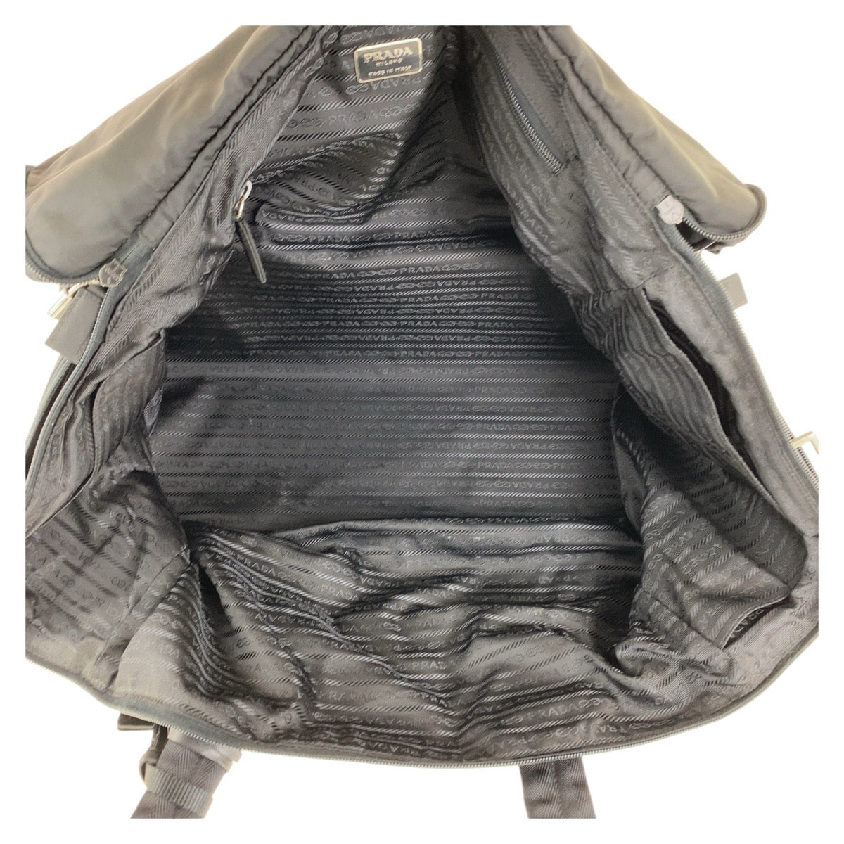 PRADA Tessuto Triangle Logo Plate Unisex Black Silver Hardware Nylon Boston Bag Shoulder Bag 2way Men's