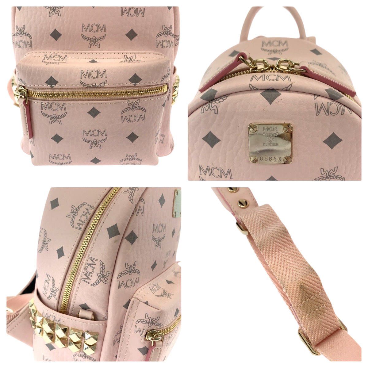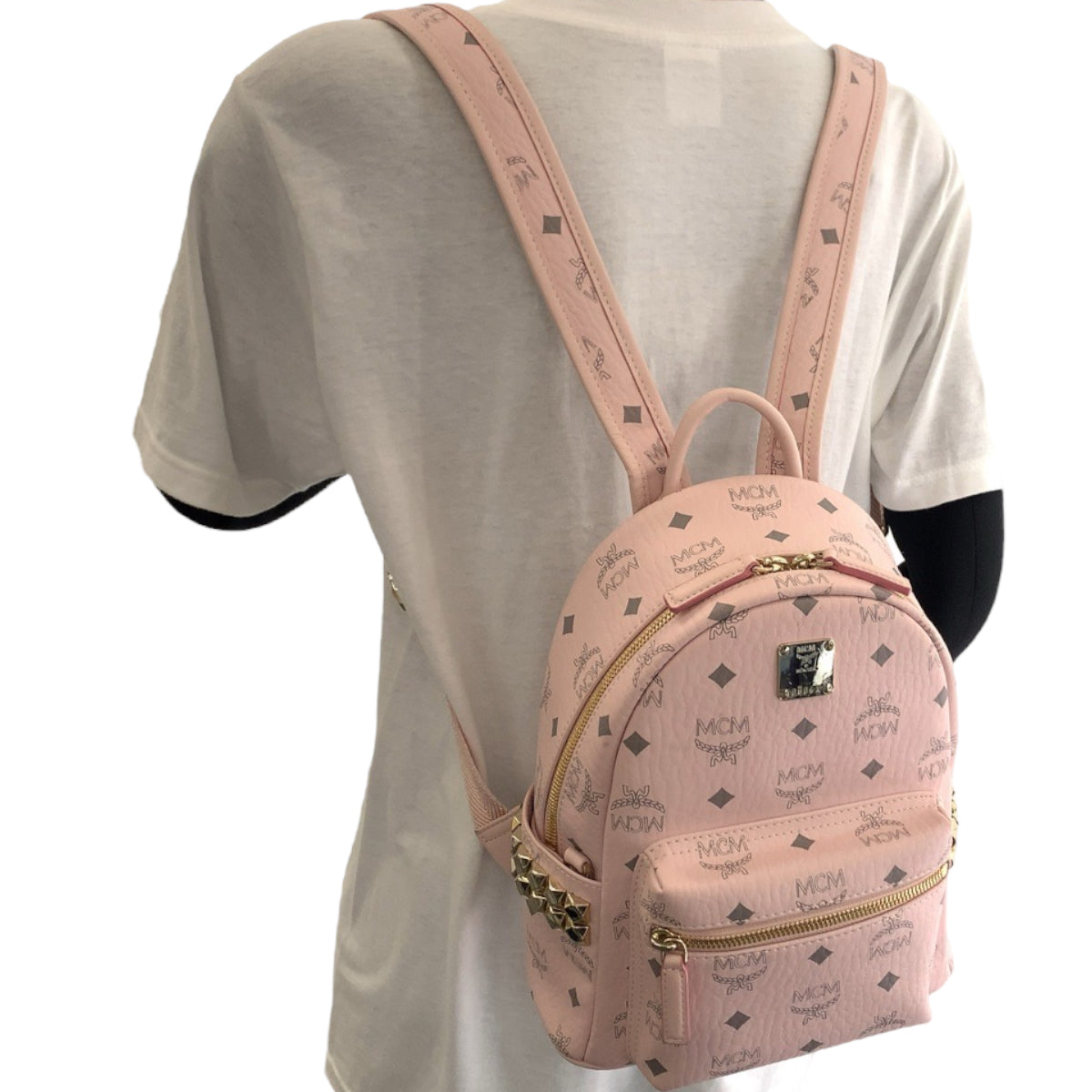 MCM Visetos Side Studs Pink Gold Hardware Leather Rucksack Backpack for Women