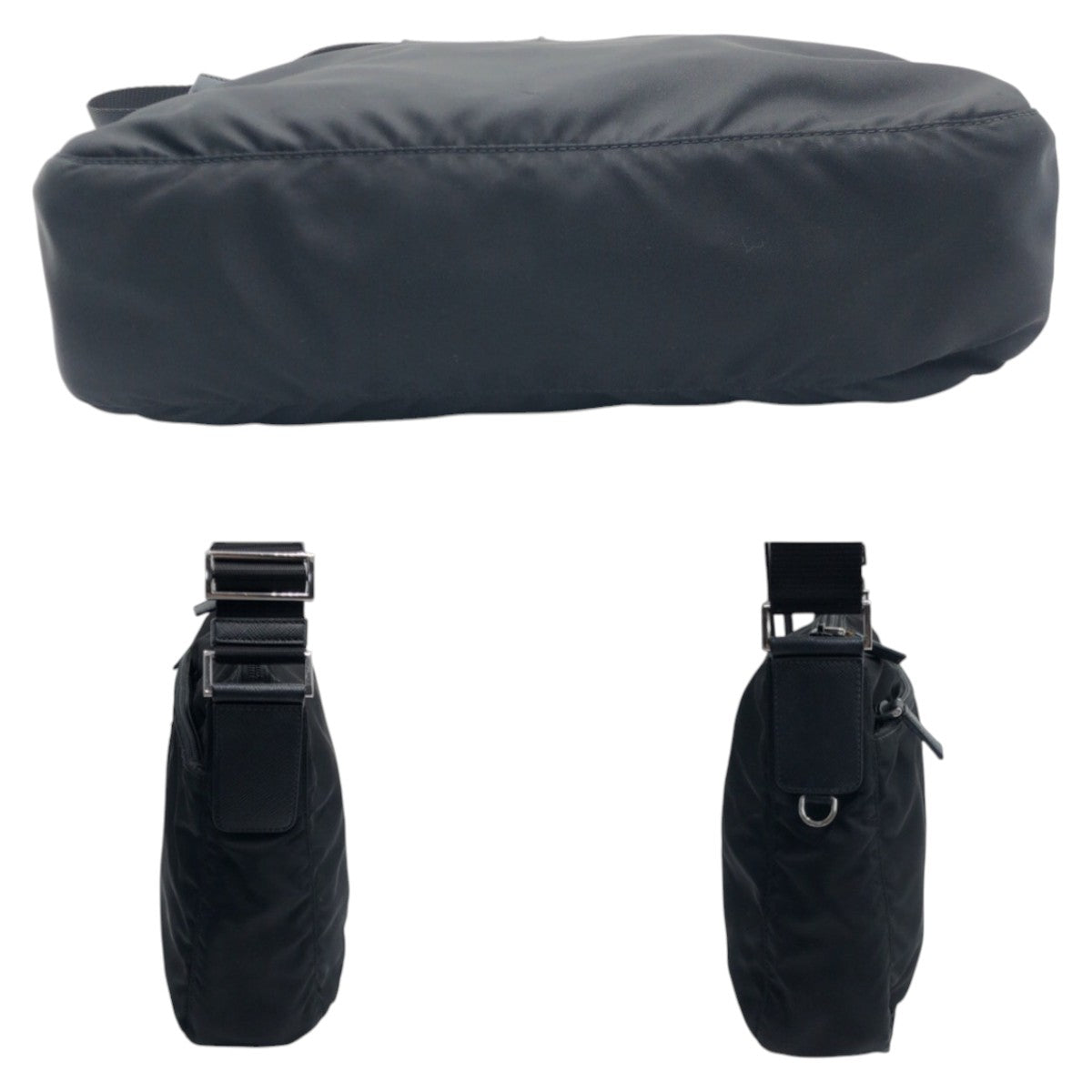 PRADA Tessuto Triangle Logo Plate Black Silver Hardware Nylon Shoulder Bag Men's