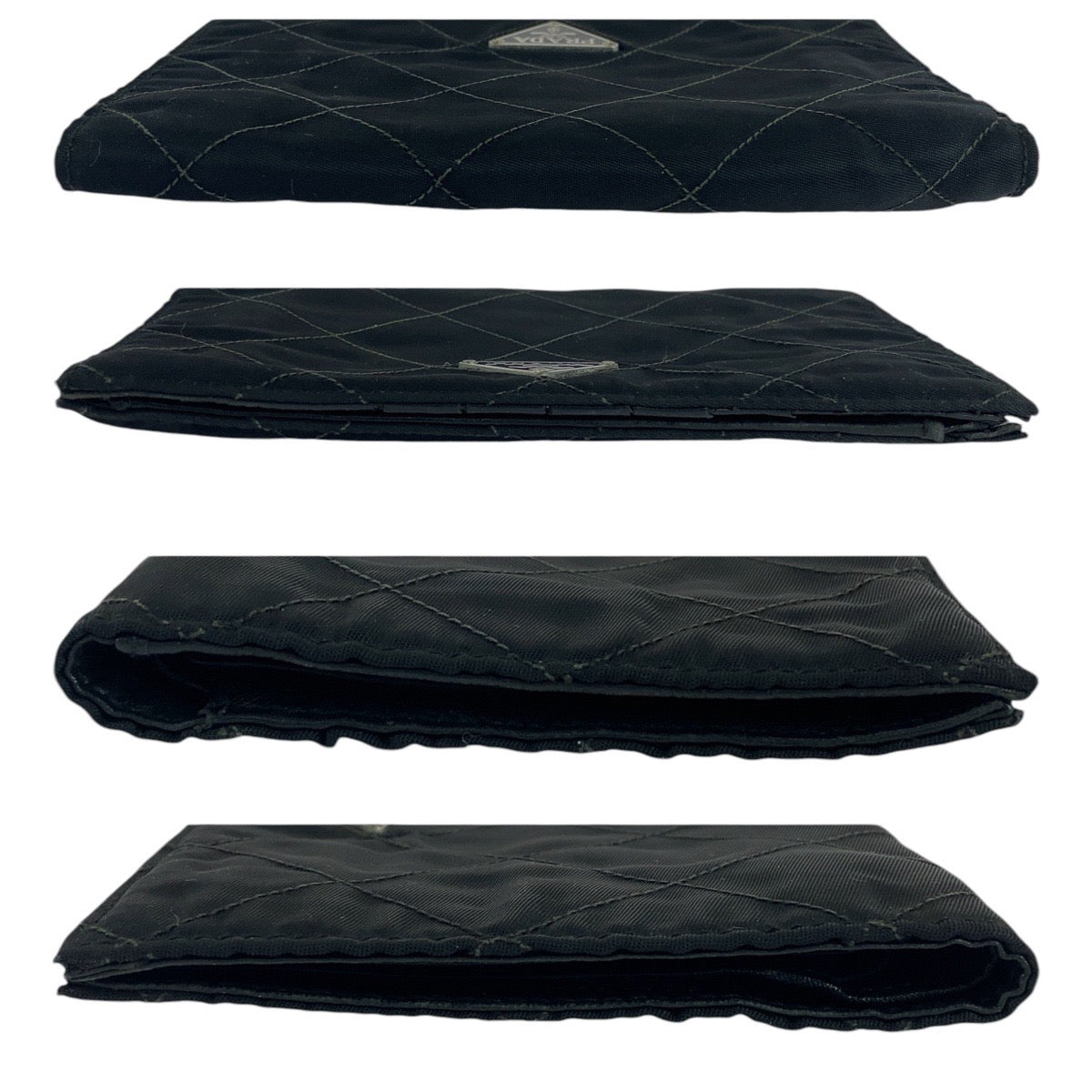 PRADA Prada Triangle logo plate Black Silver hardware Nylon Long wallet Women's