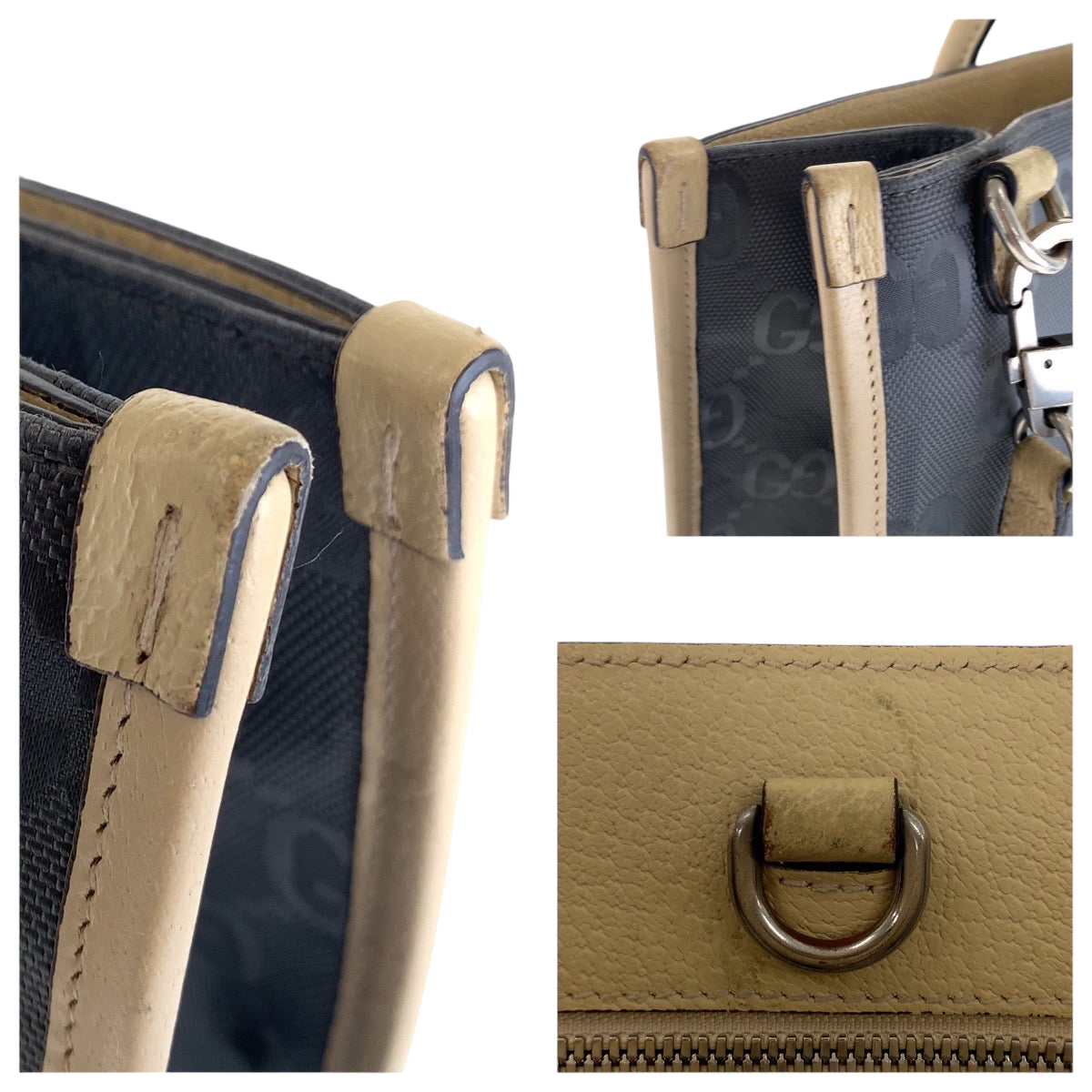15635 GUCCI Off the Grid Gray Beige Silver Hardware Nylon 630355 Tote Bag Shoulder Bag 2way Women's