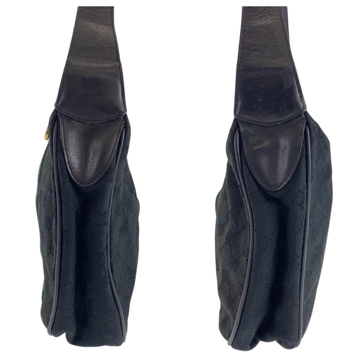 15950 GUCCI グッチ ヴィンテージ オールドグッチ シェリーライン ブラック 黒 マルチカラー ゴールド金具 GGキャンバス / レザー 10 2 3840 斜め掛け ショルダーバッグ レディース AB45