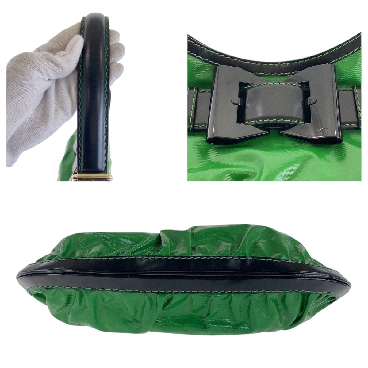 16215 GUCCI グッチ グリーン ブラック ゴールド金具 ナイロン / レザー 189885 ショルダーバッグ ホーボー レディース AB56