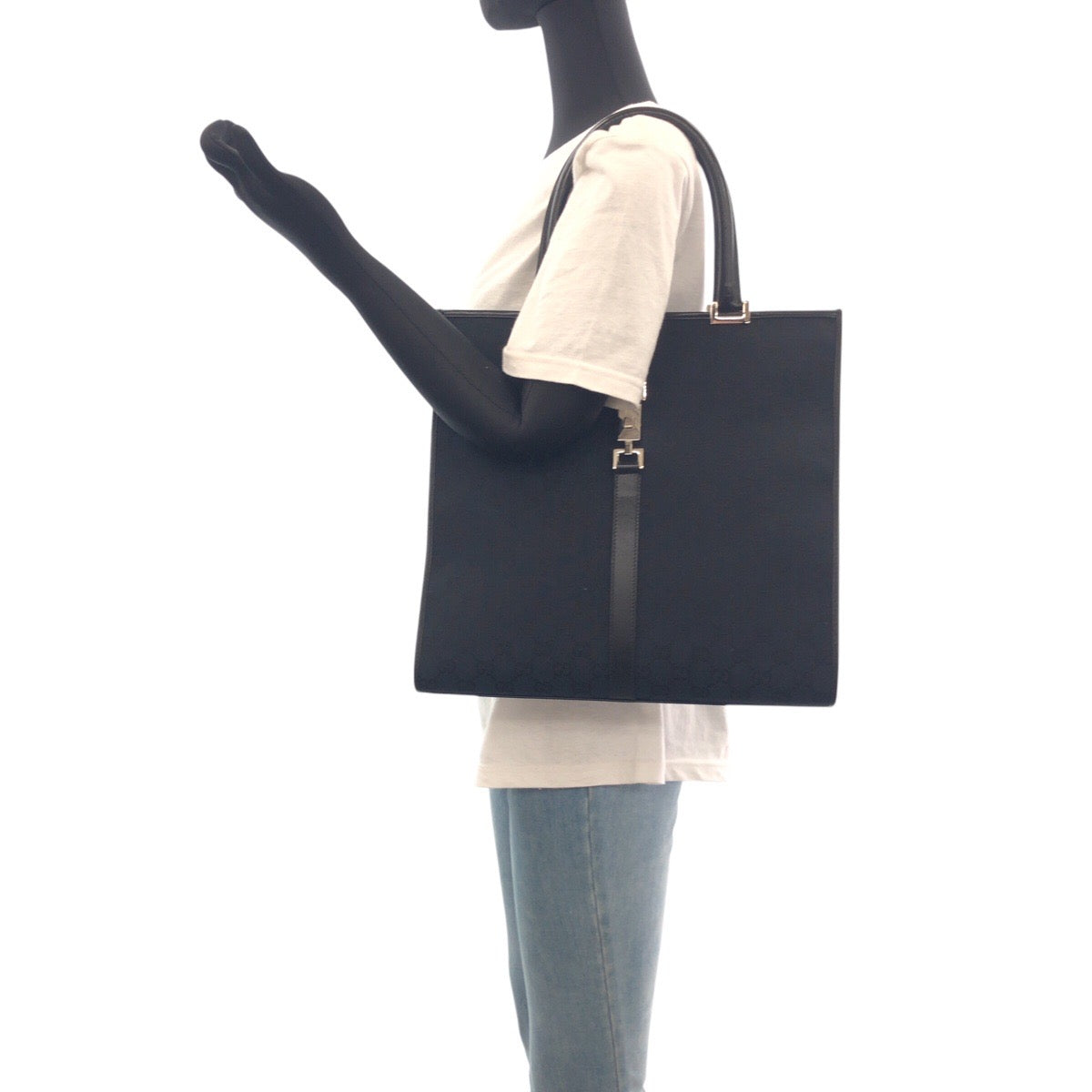 21432 GUCCI グッチ ジャッキー ブラック 黒 シルバー金具 GGキャンバス / レザー 002 1064 トートバッグ ショルダーバッグ レディース A50
