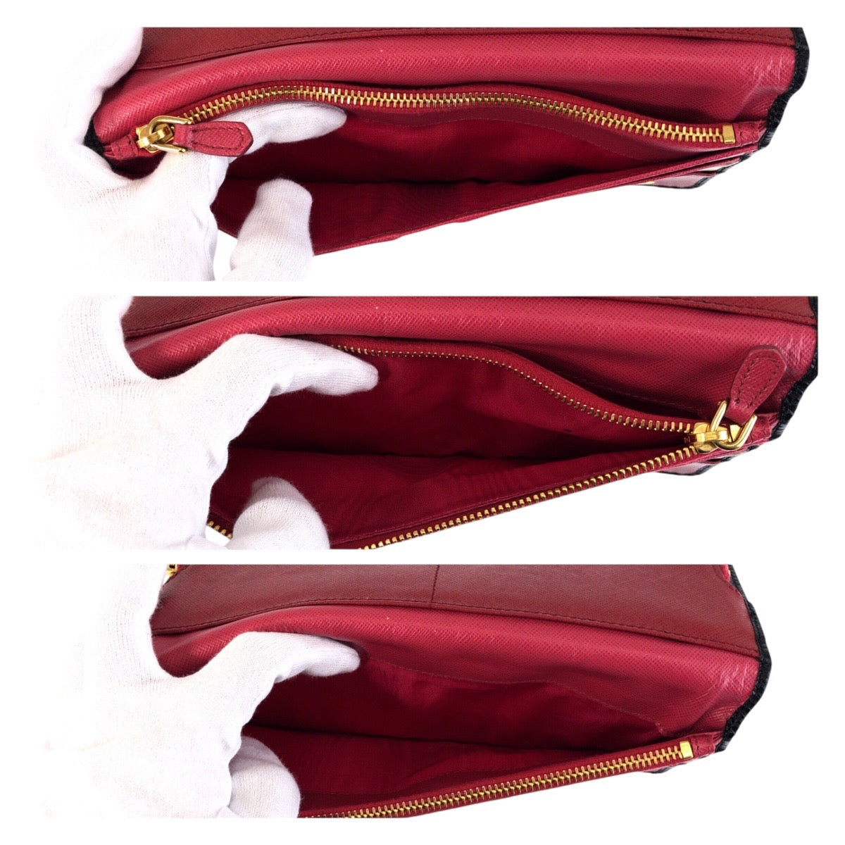 16778 PRADA プラダ サフィアーノ ブラック 黒 ピンク ゴールド金具 レザー 長財布 ラウンドファスナー ジップ ロングウォレット レディース ABP32