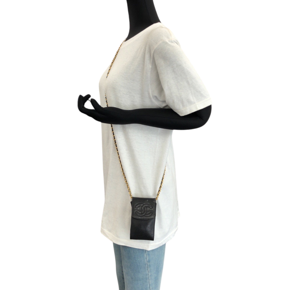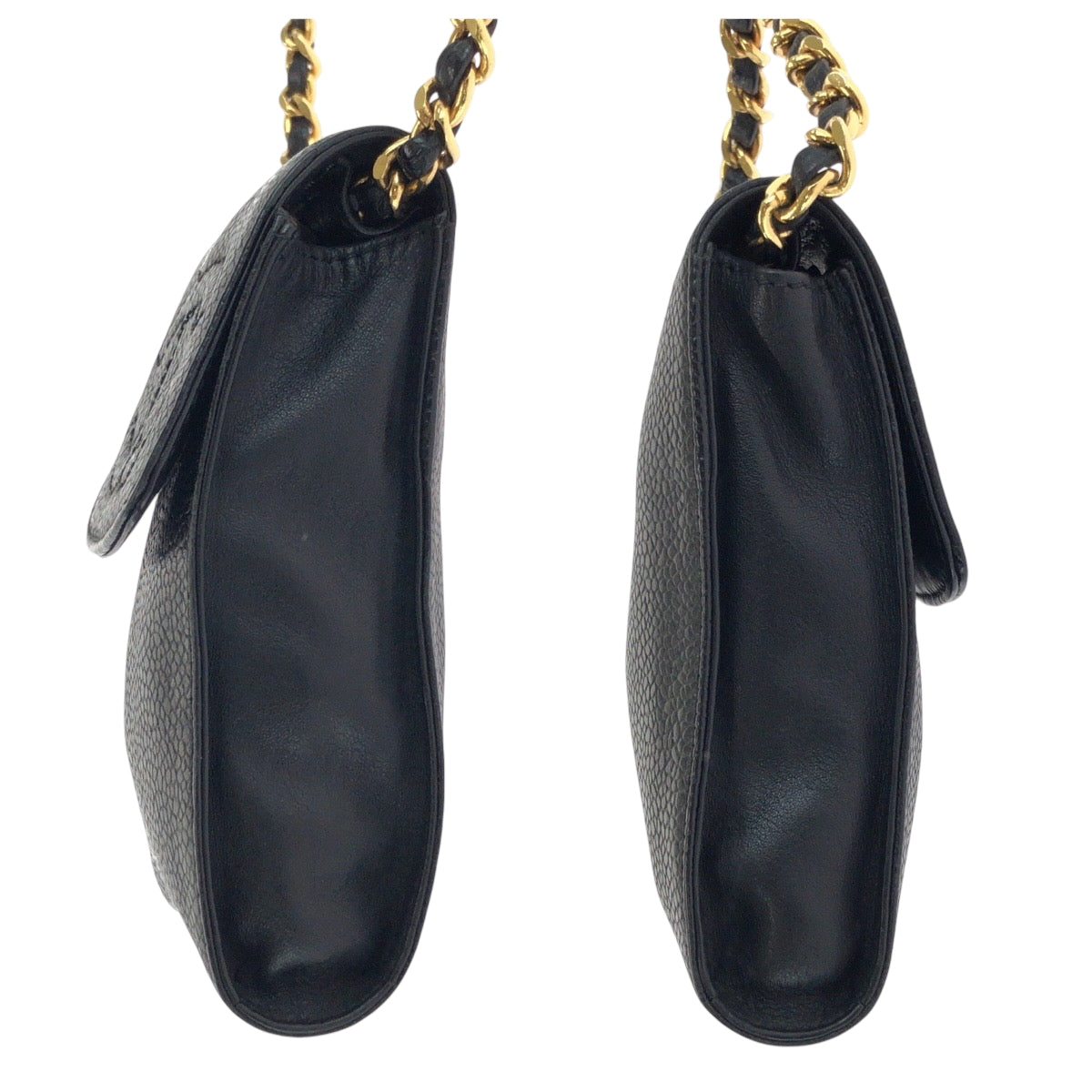 16999 CHANEL シャネル ココマーク ブラック 黒 ゴールド金具 キャビアスキン チェーンショルダーバッグ ポシェット シガレットケース レディース ABP78