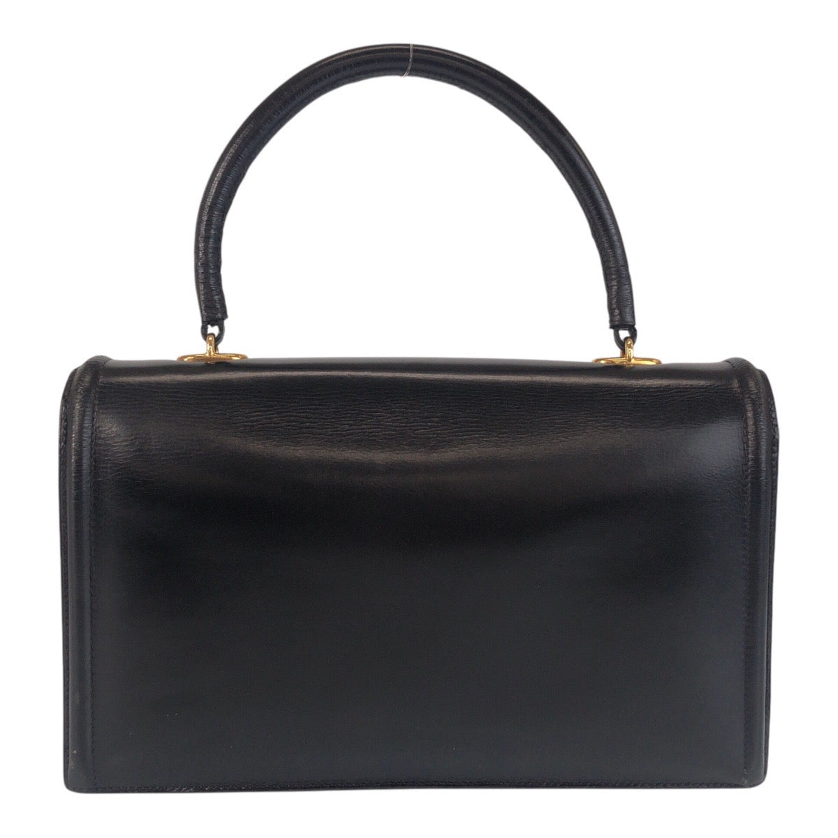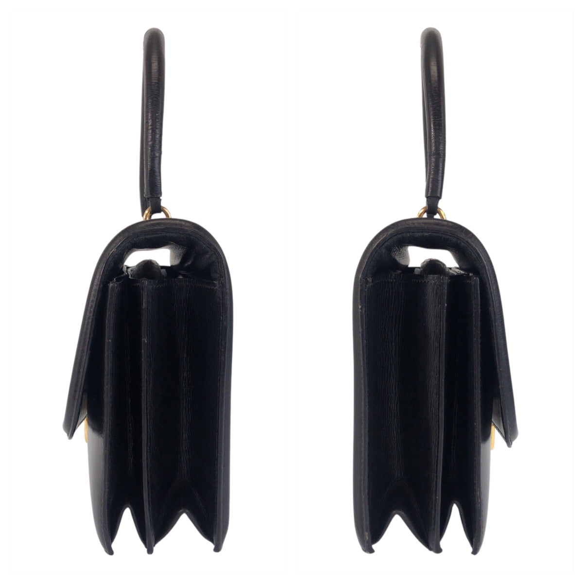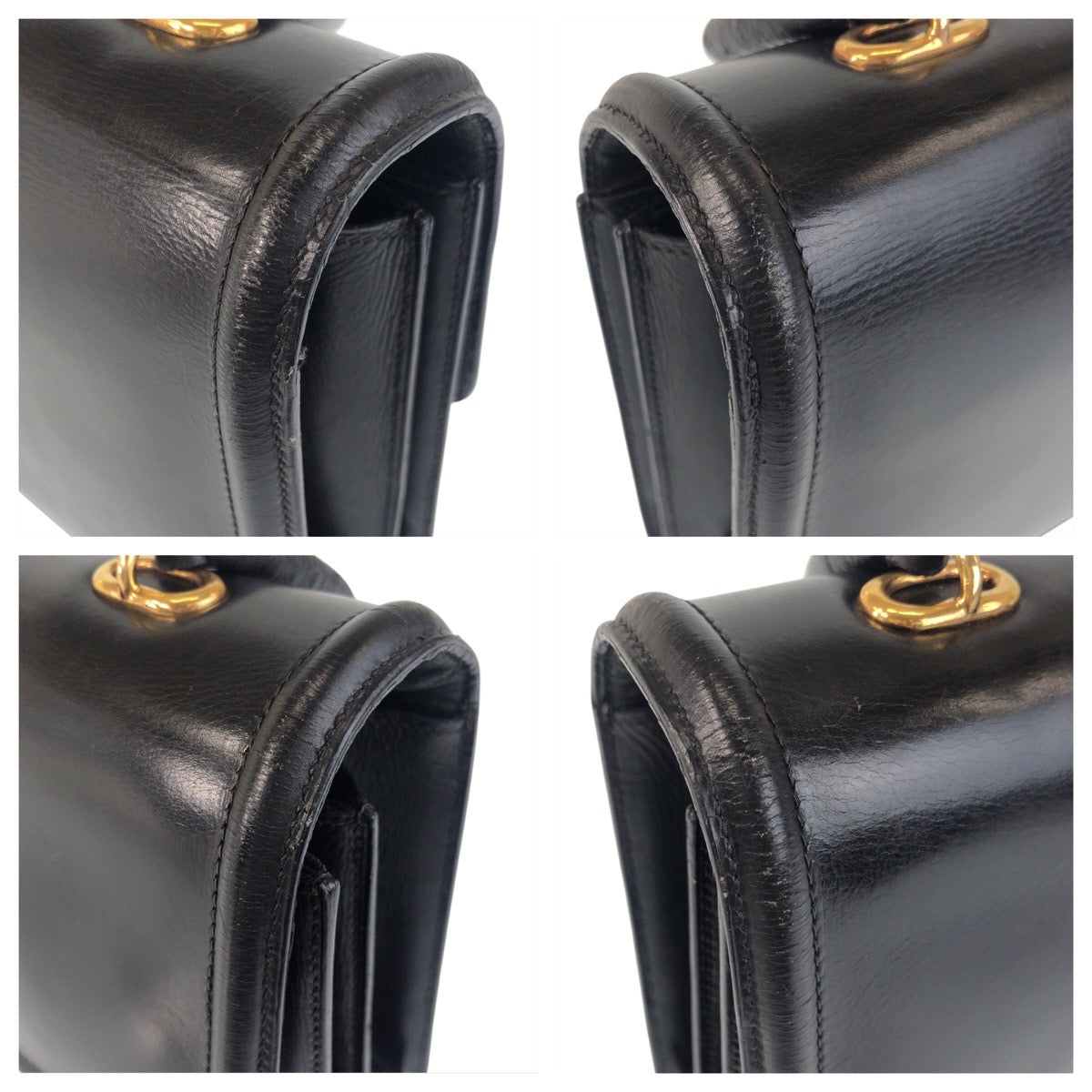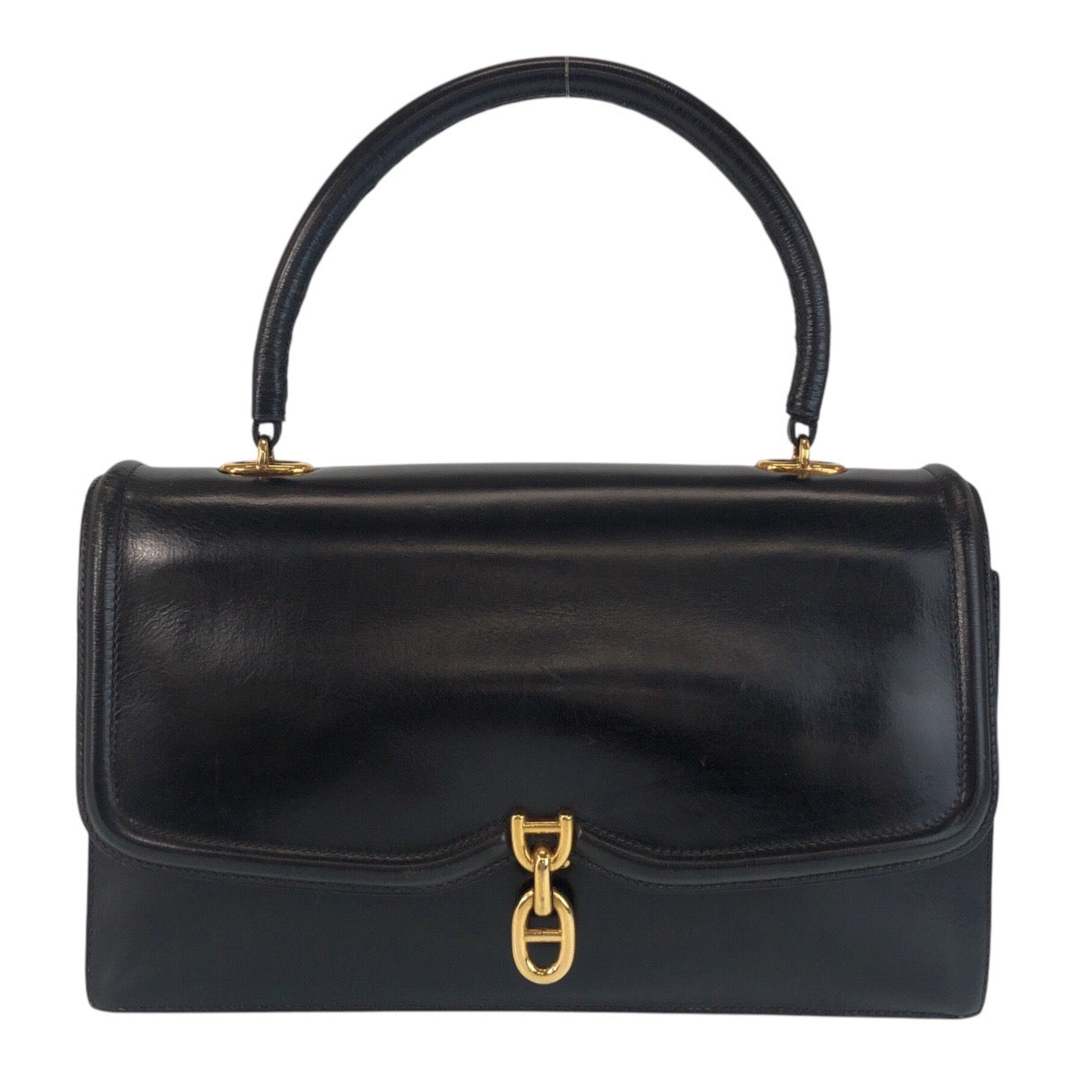 17014 HERMES エルメス ヴィンテージ シェーヌダンクル サック ア マン ブラック ゴールド金具 ボックスカーフ ハンドバッグ レディース AB400