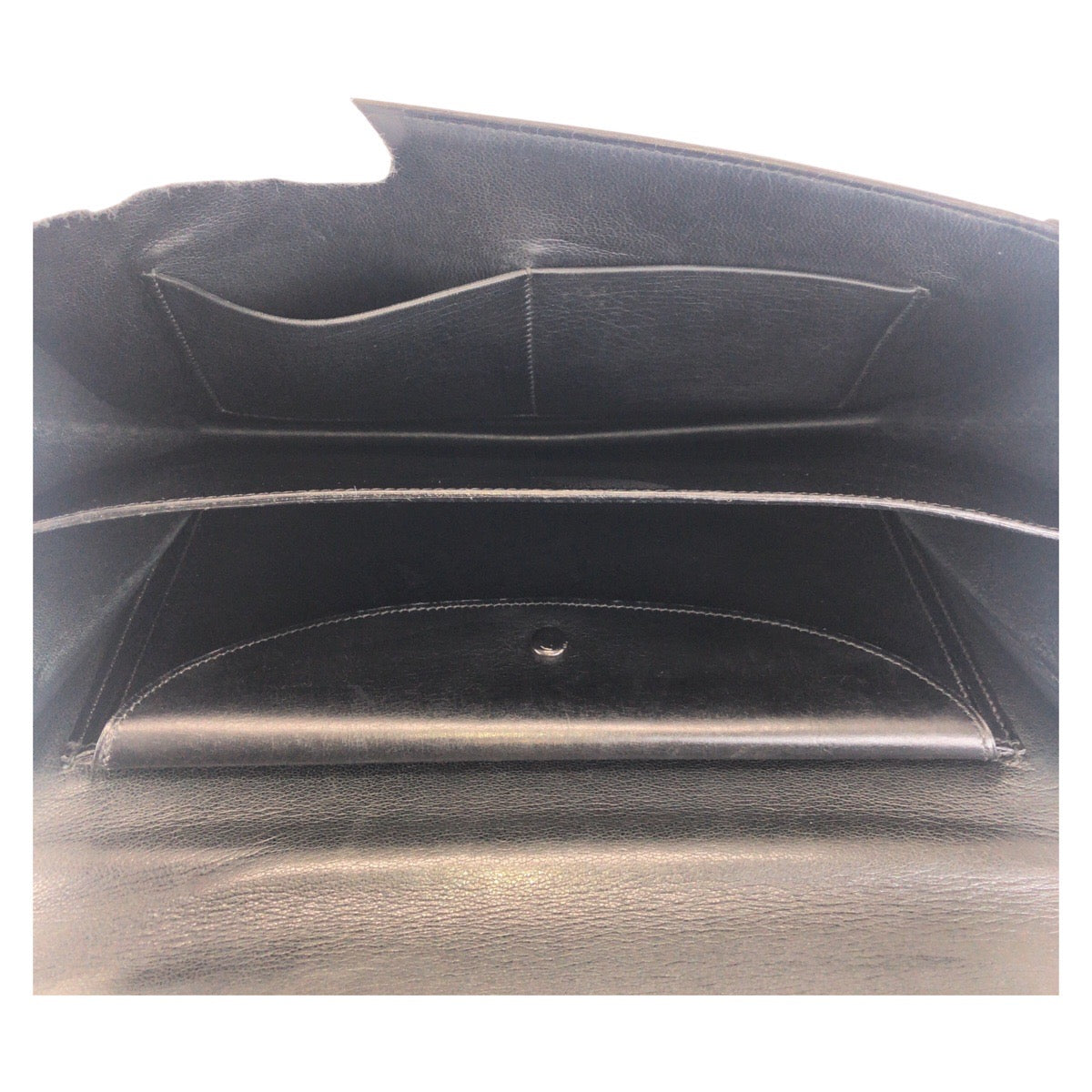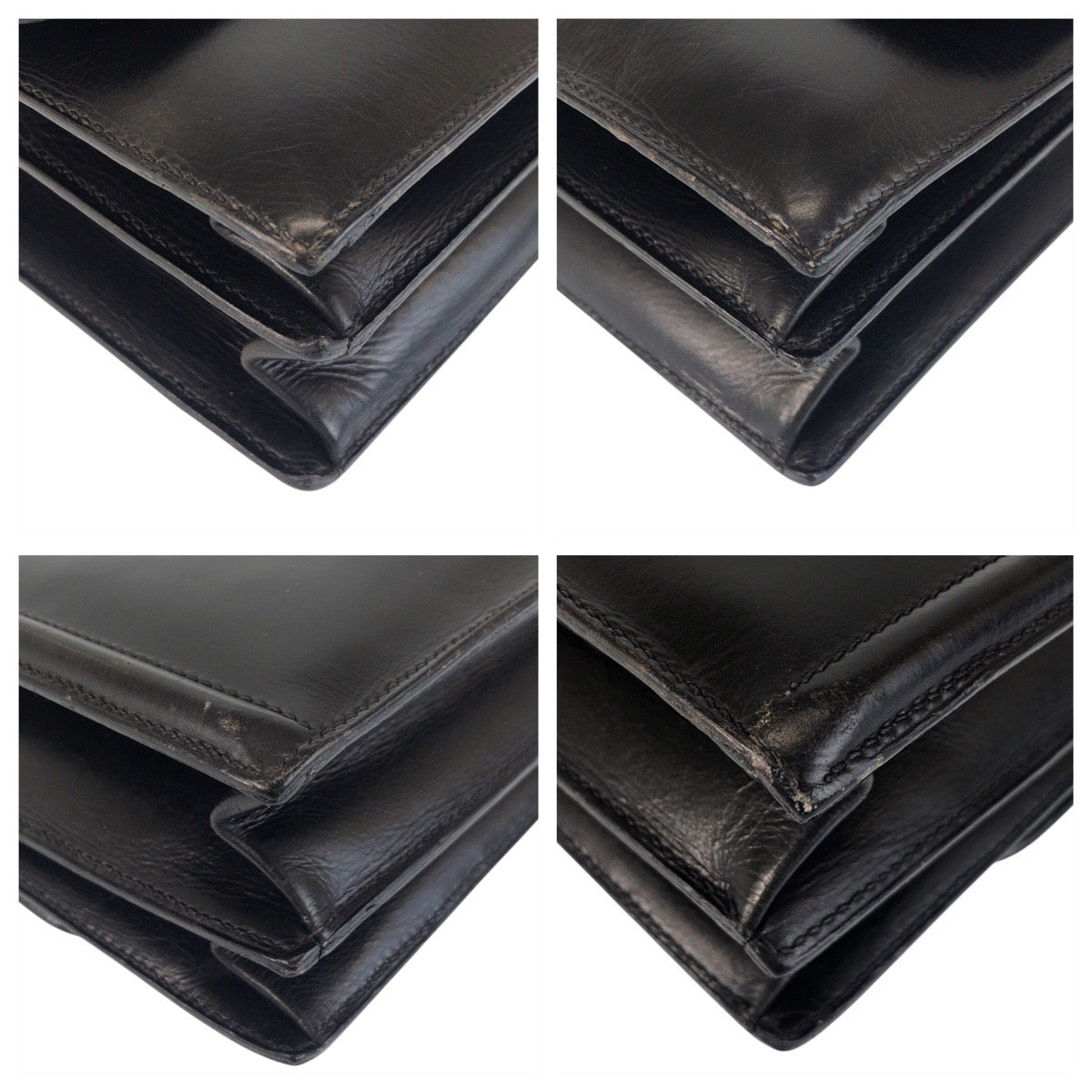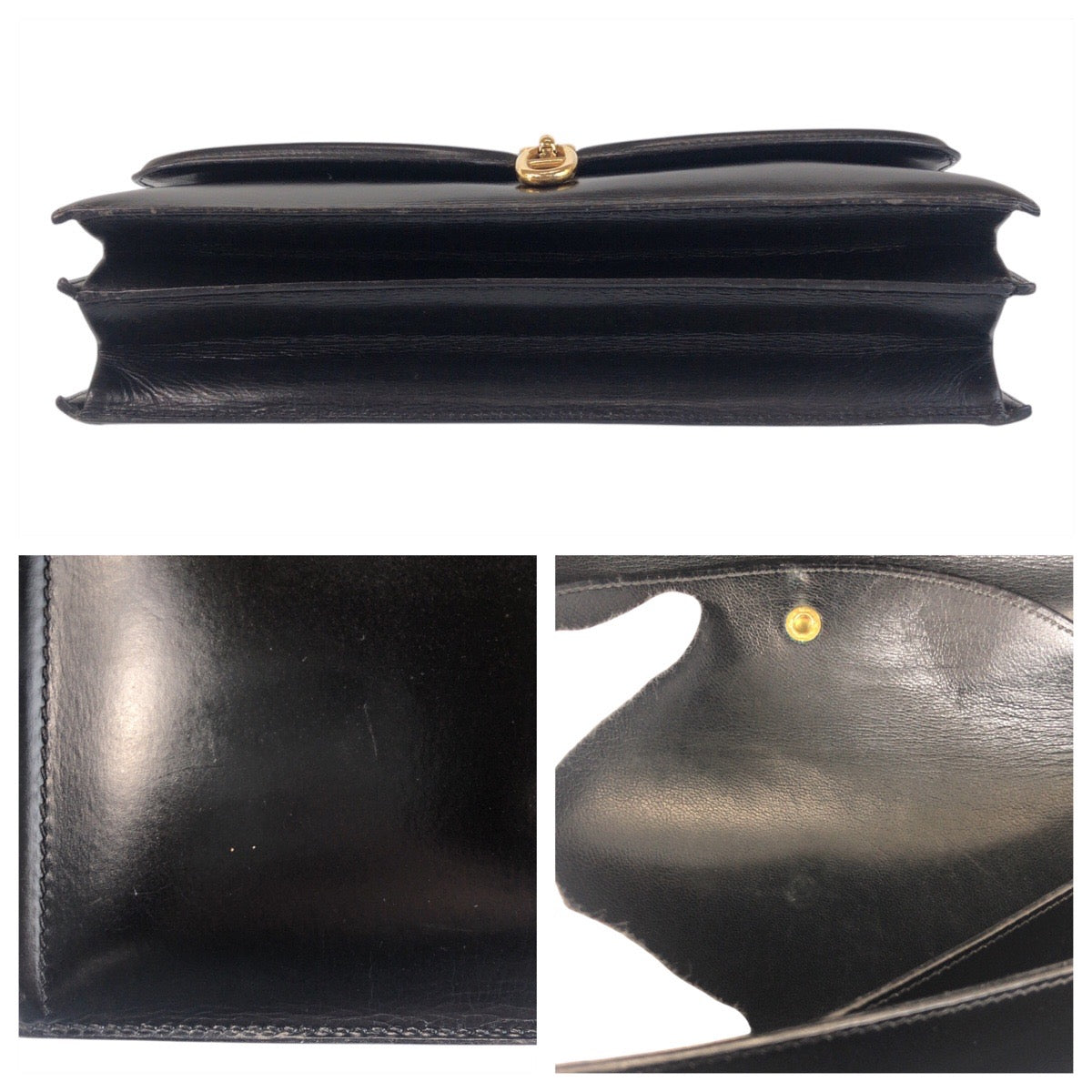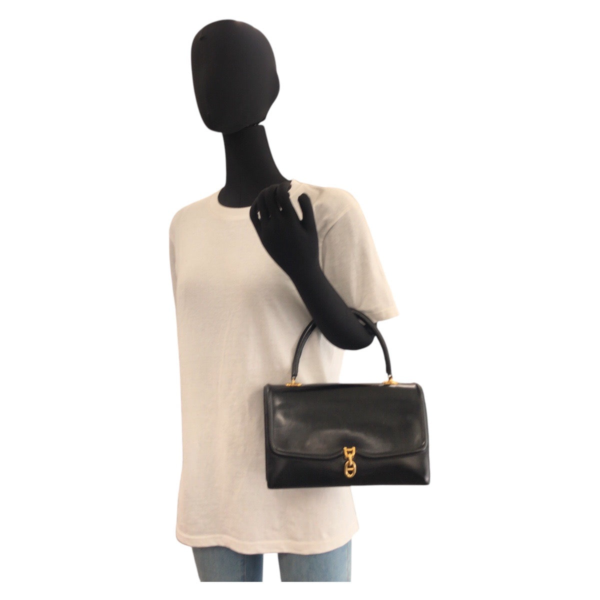 17014 HERMES エルメス ヴィンテージ シェーヌダンクル サック ア マン ブラック ゴールド金具 ボックスカーフ ハンドバッグ レディース AB400