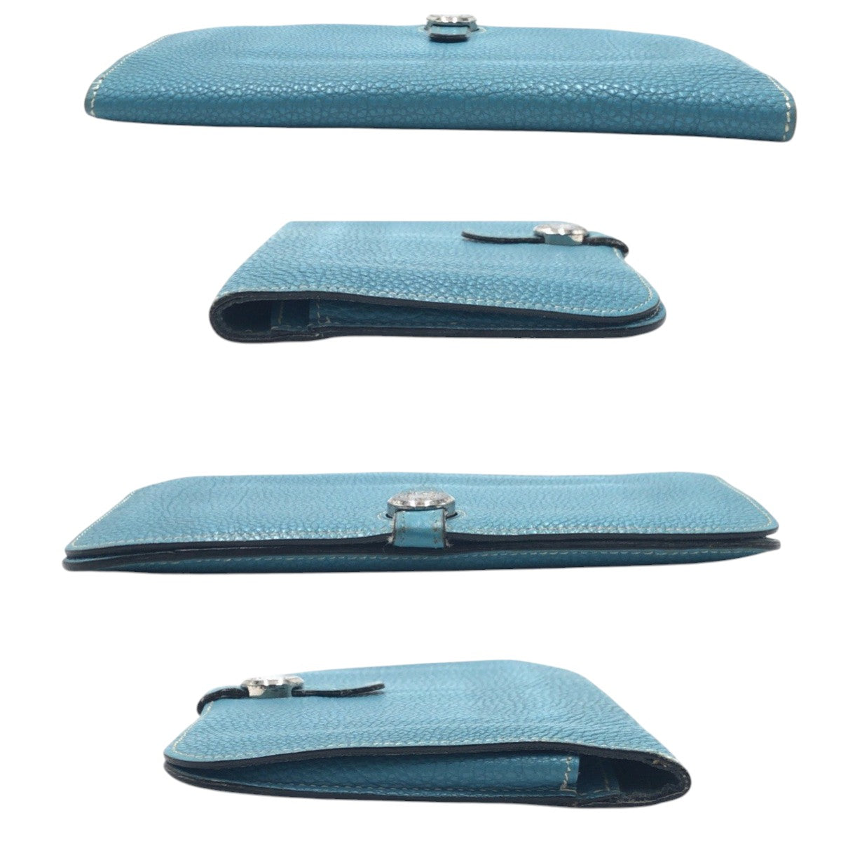 17202 HERMES エルメス ドゴンGM ブルー ライトブルー シルバー金具 トゴ 長財布 ロングウォレット 男女兼用 □H刻印 レディース AB30