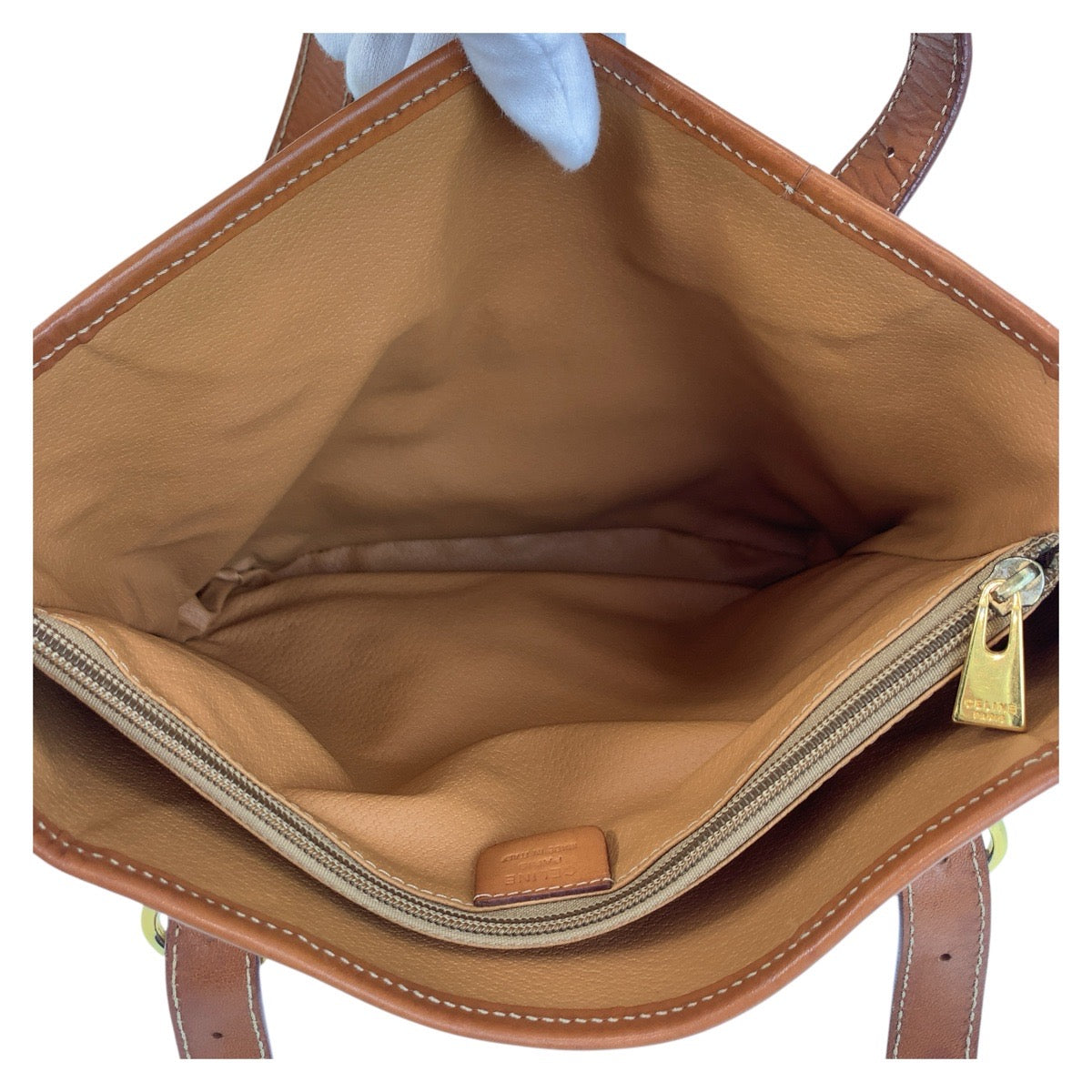 17339 CELINE セリーヌ ヴィンテージ マカダム ブラウン ゴールド金具 PVC / レザー MC96 トートバッグ ショルダーバッグ レディース ABP40