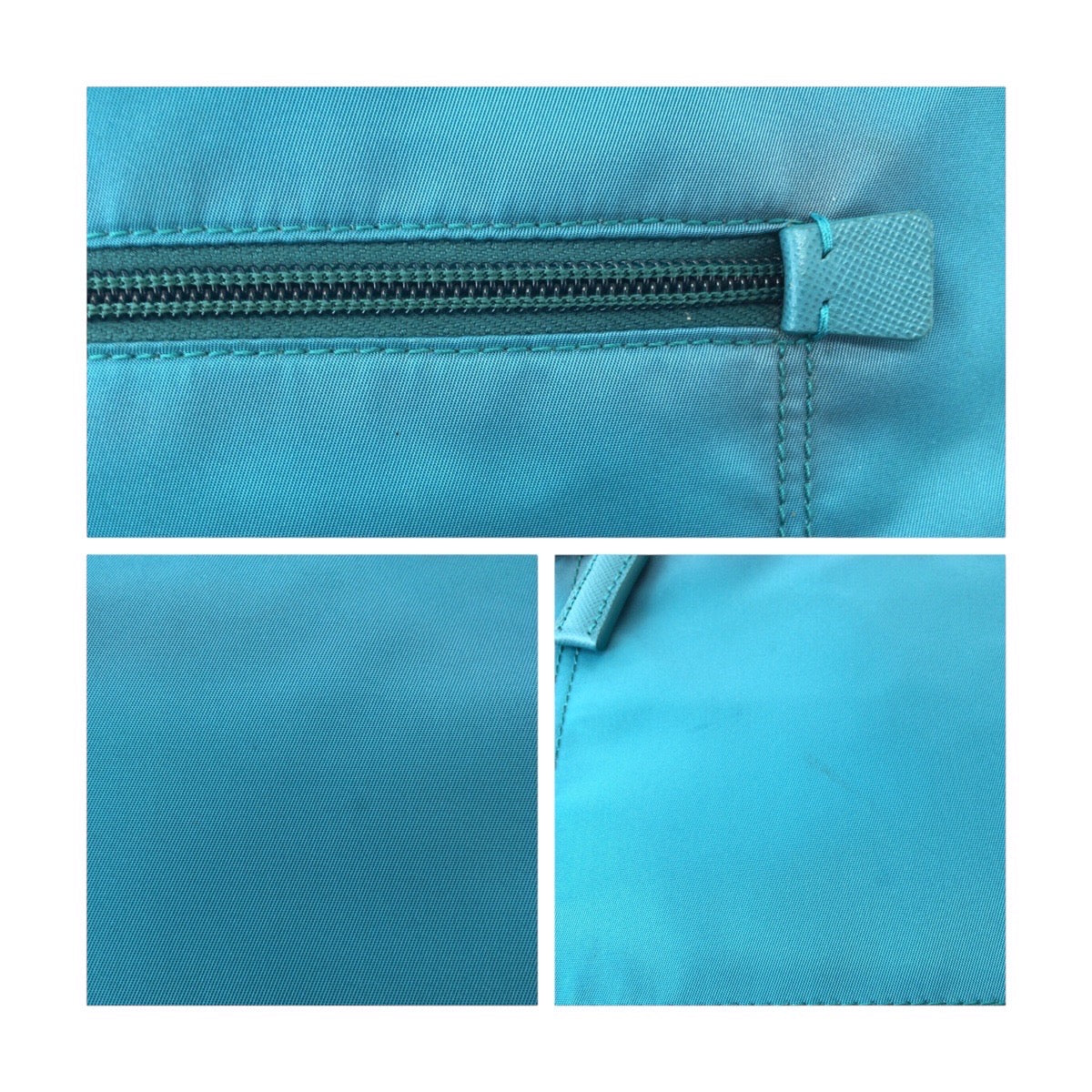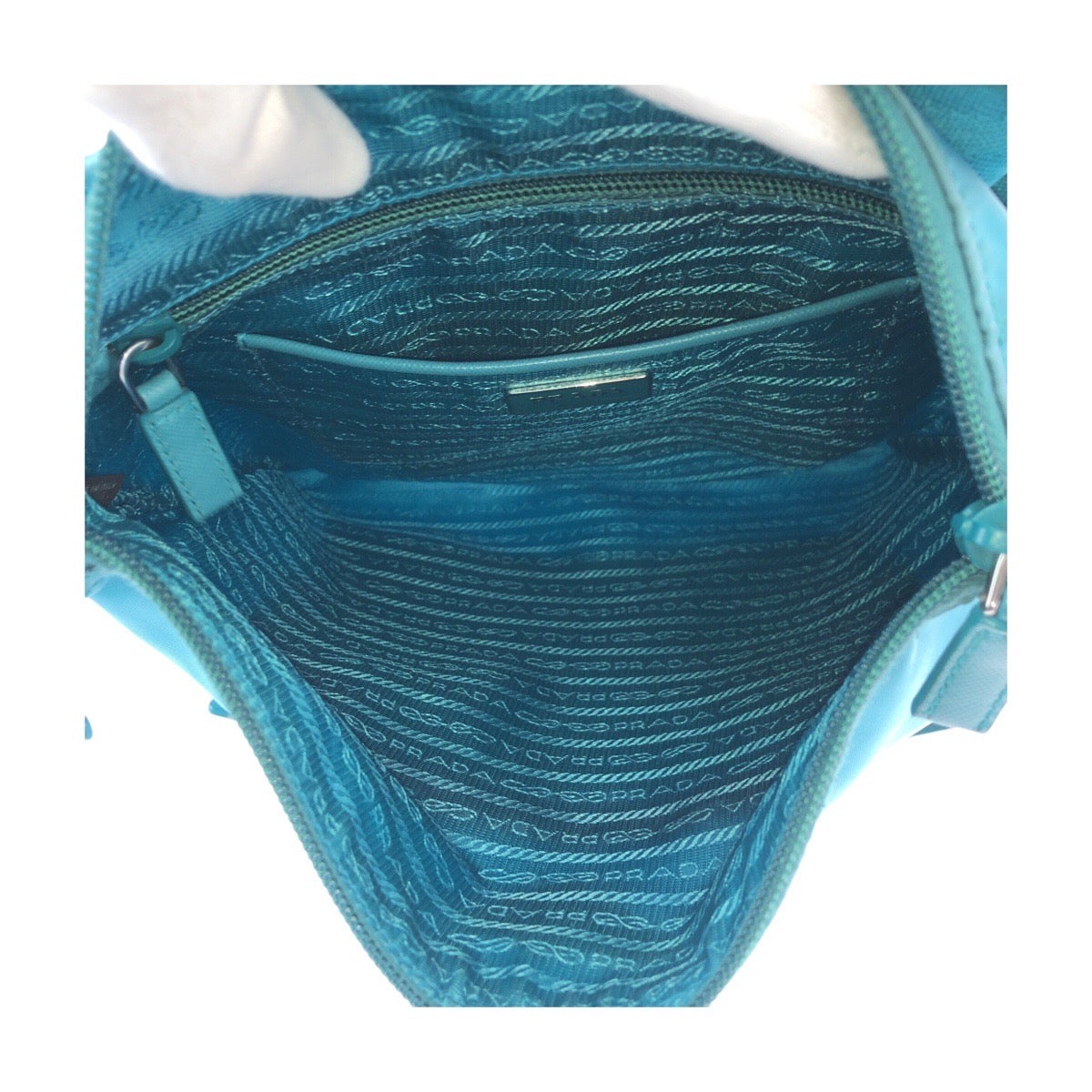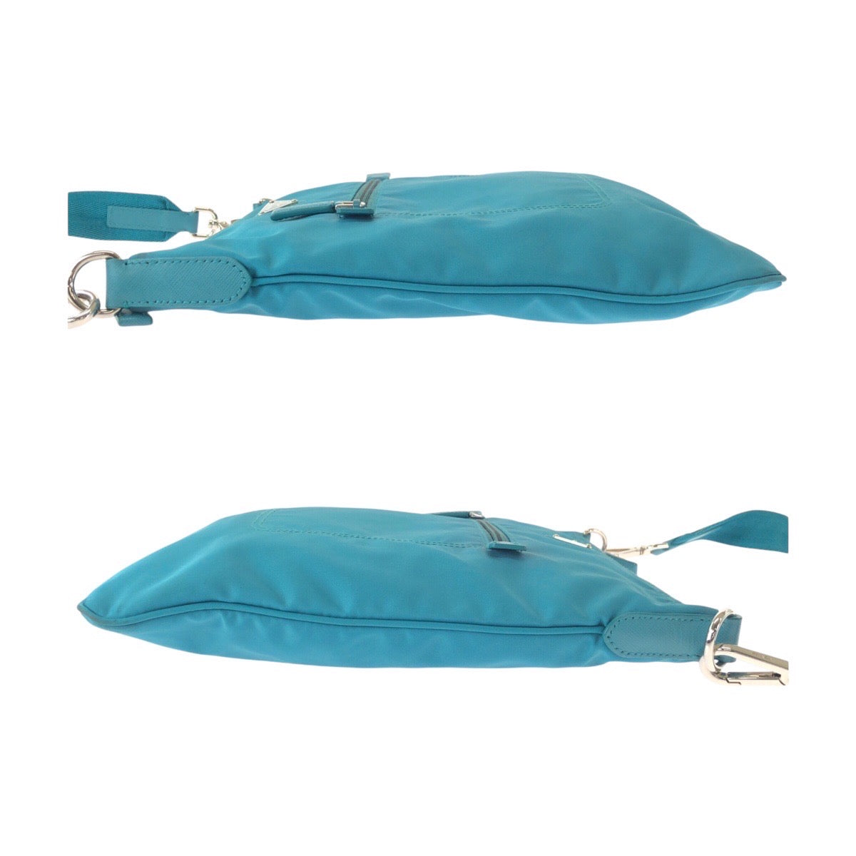 18593 PRADA プラダ テスート 三角ロゴプレート ライトブルー エメラルド シルバー金具 ナイロン ショルダーバッグ ポシェット レディース ABP41