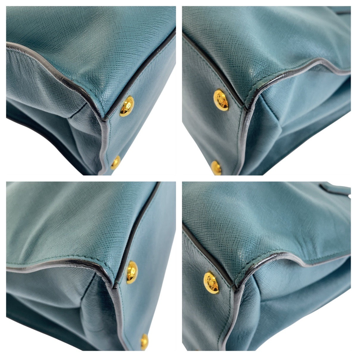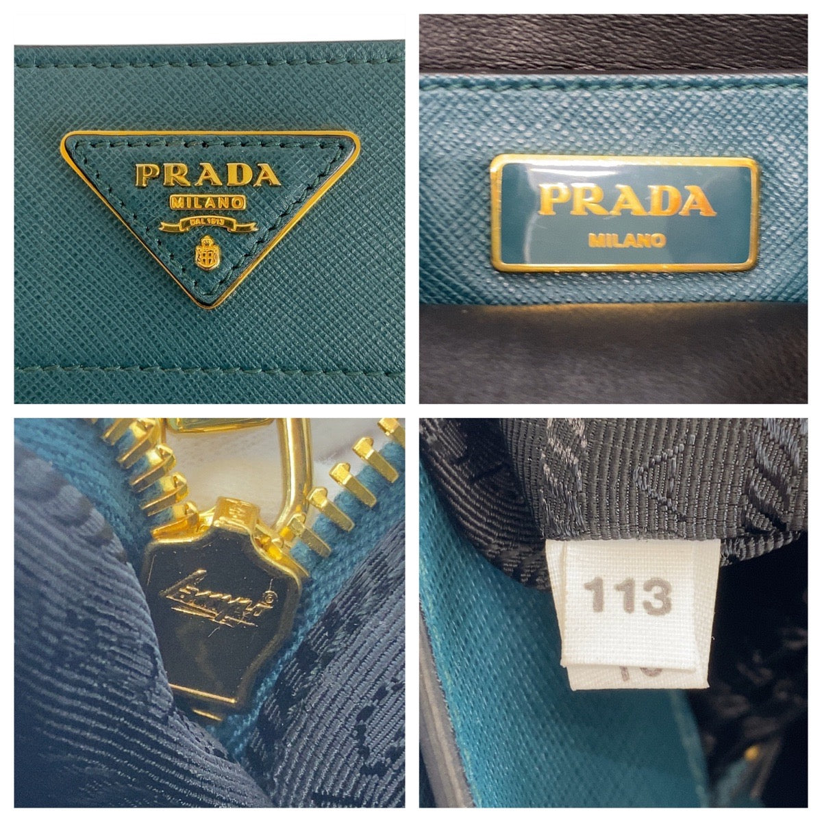 18626 PRADA プラダ サフィアーノ 三角ロゴプレート グリーン ゴールド金具 トートバッグ ショルダーバッグ 2way レディース ABP63