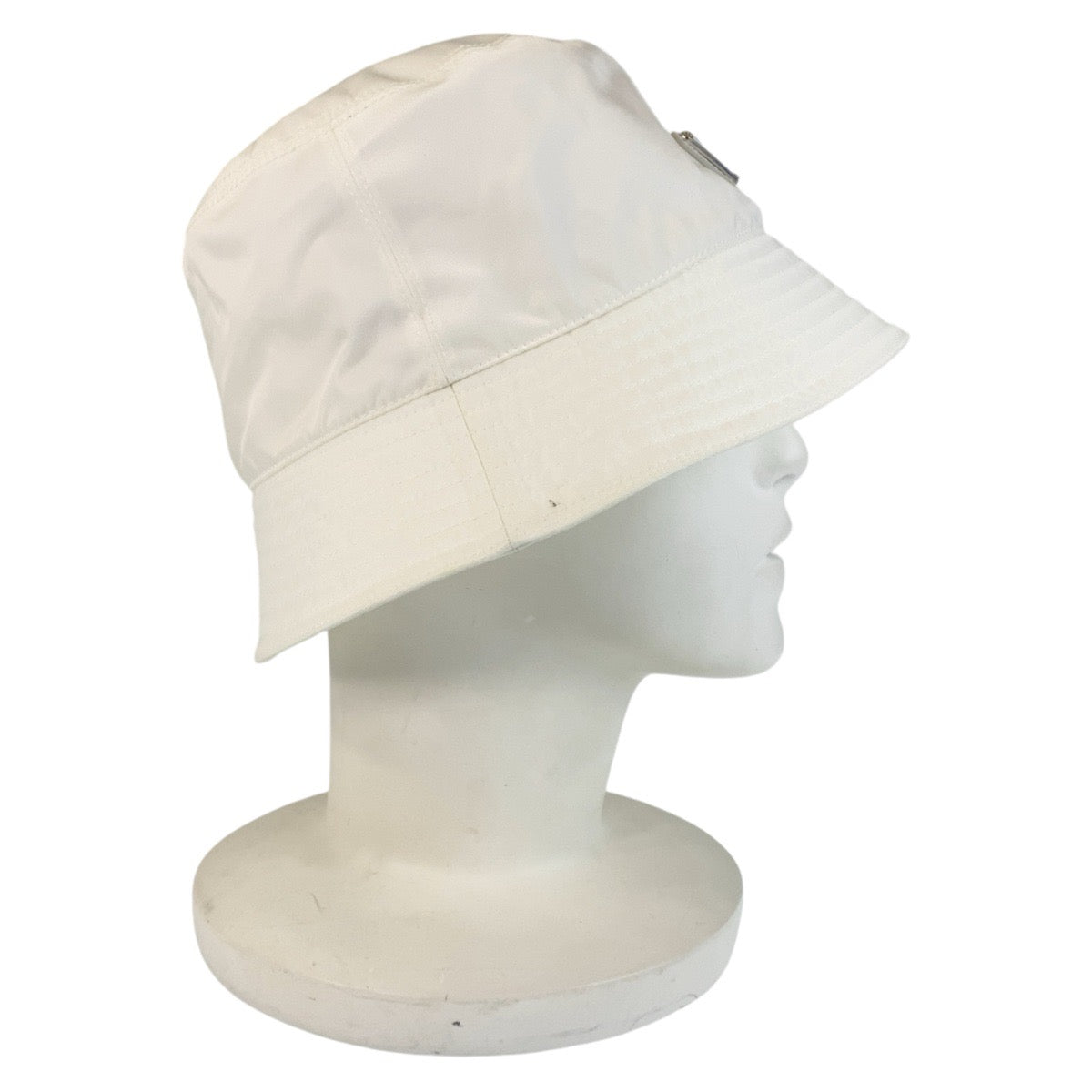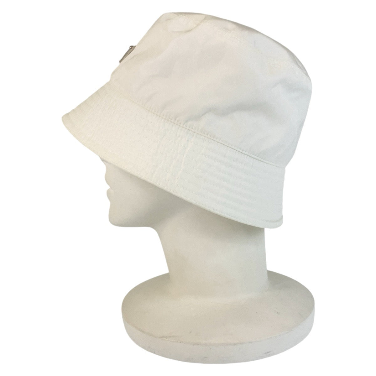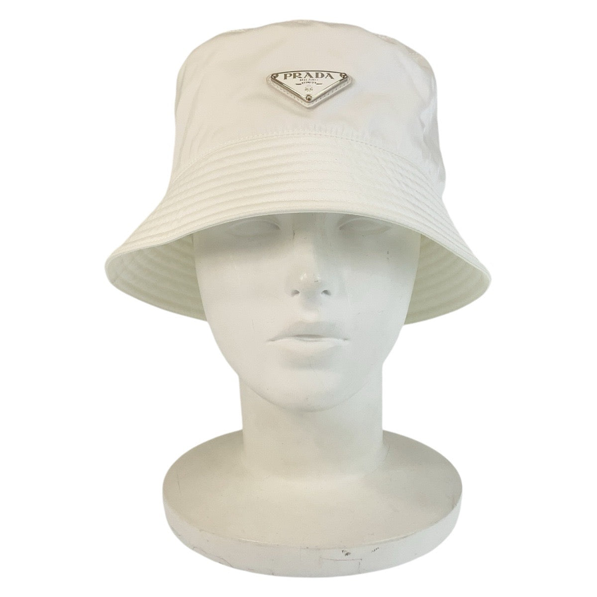 PRADA プラダ テスート 三角ロゴプレート ホワイト 白 シルバー金具 ナイロン バケットハット レディース A