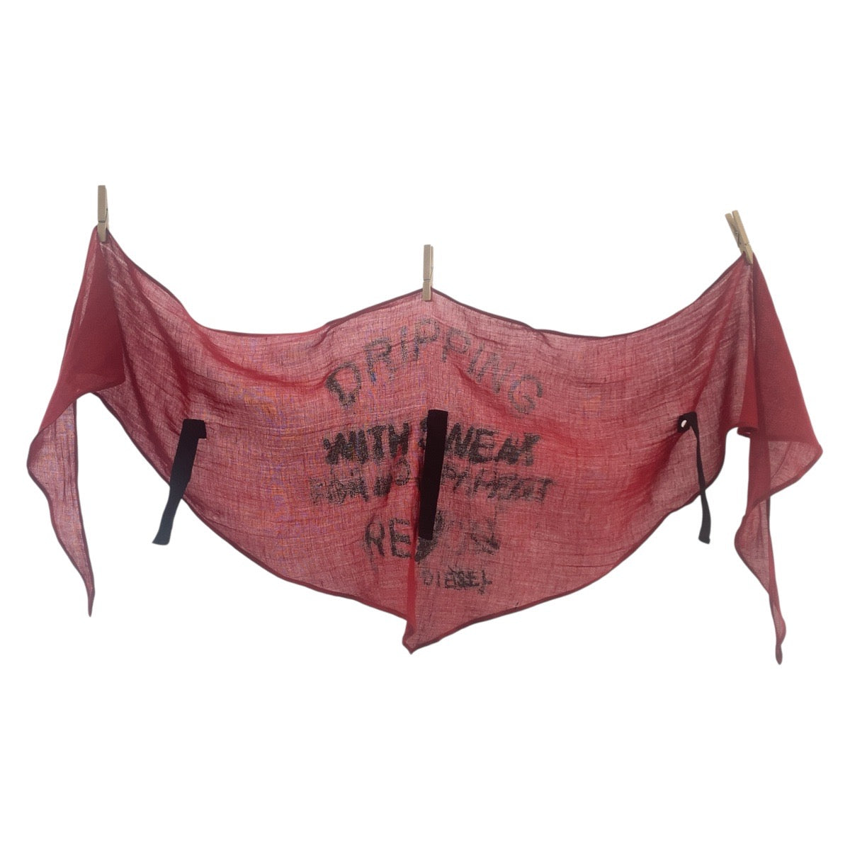 20199 DIESEL ディーゼル レッド ブラック リネン / レーヨン スカーフ ストール ショール マスク メンズ ABP5