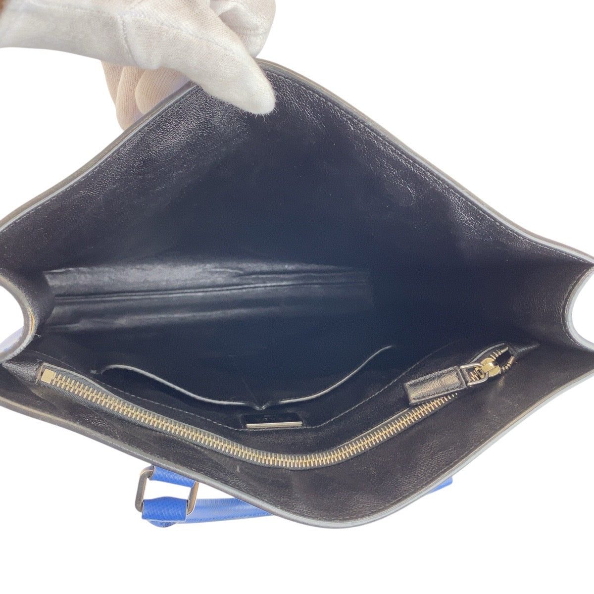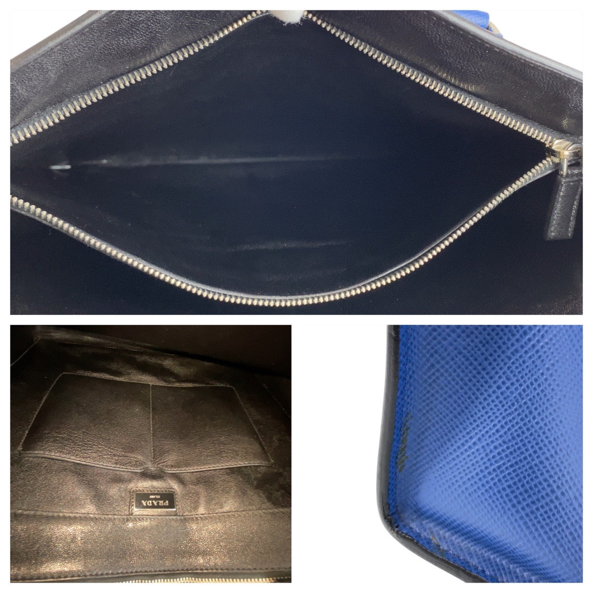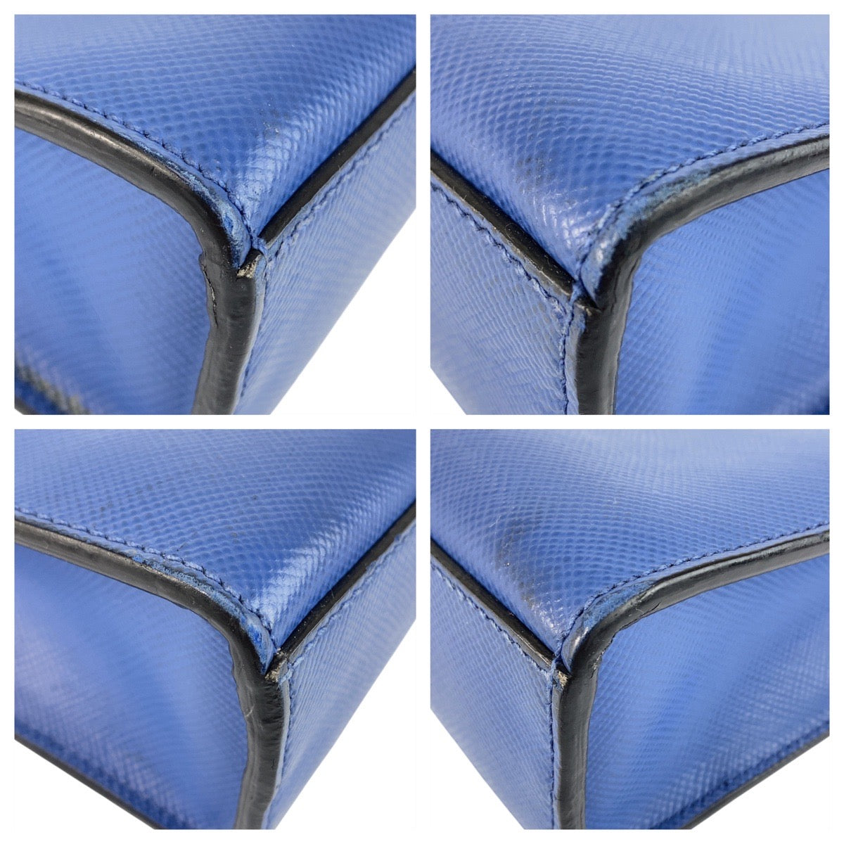 20213 PRADA プラダ サフィアーノ 三角ロゴプレート ブルー シルバー金具 レザー トートバッグ ハンドバッグ 男女兼用 メンズ ABP70