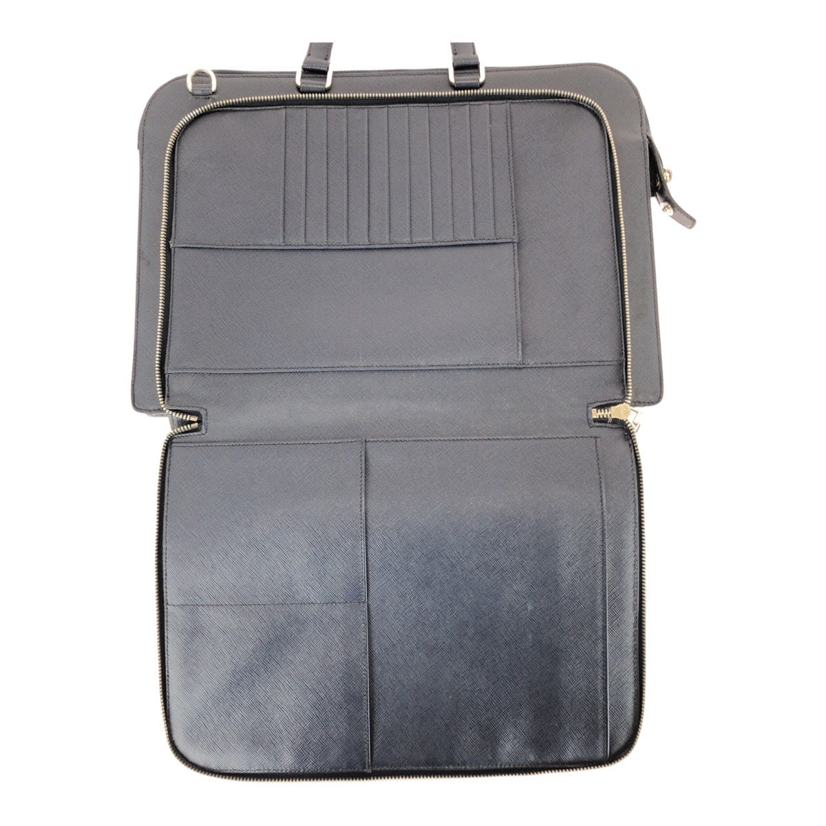 20282 PRADA プラダ サフィアーノ 三角ロゴプレート ネイビー シルバー金具 レザー ビジネスバッグ ハンドバッグ メンズ AB57