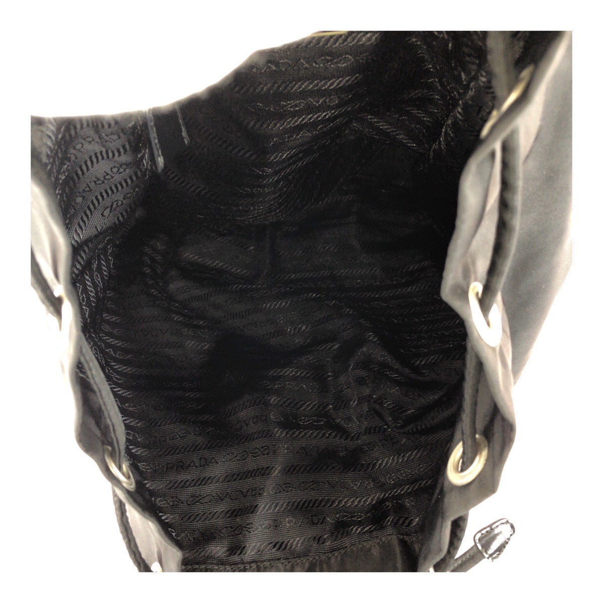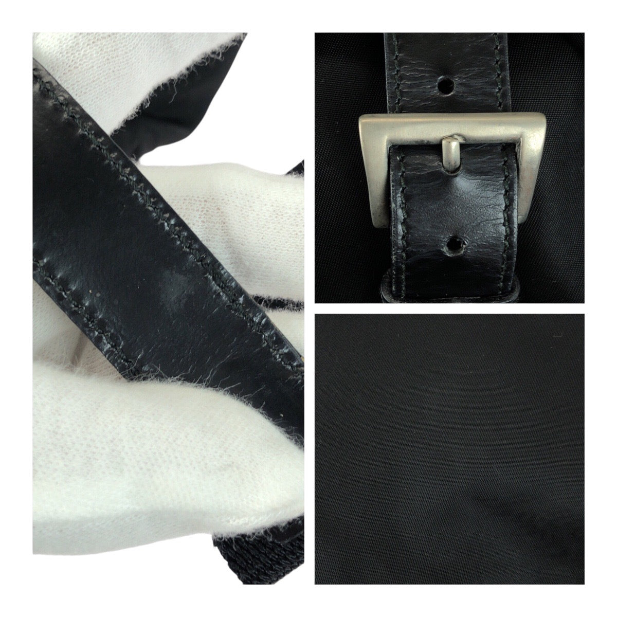 20448 PRADA プラダ ヴィンテージ テスート 三角ロゴプレート ブラック 黒 シルバー金具 ナイロン B1197F リュックサック バックパック レディース AB35