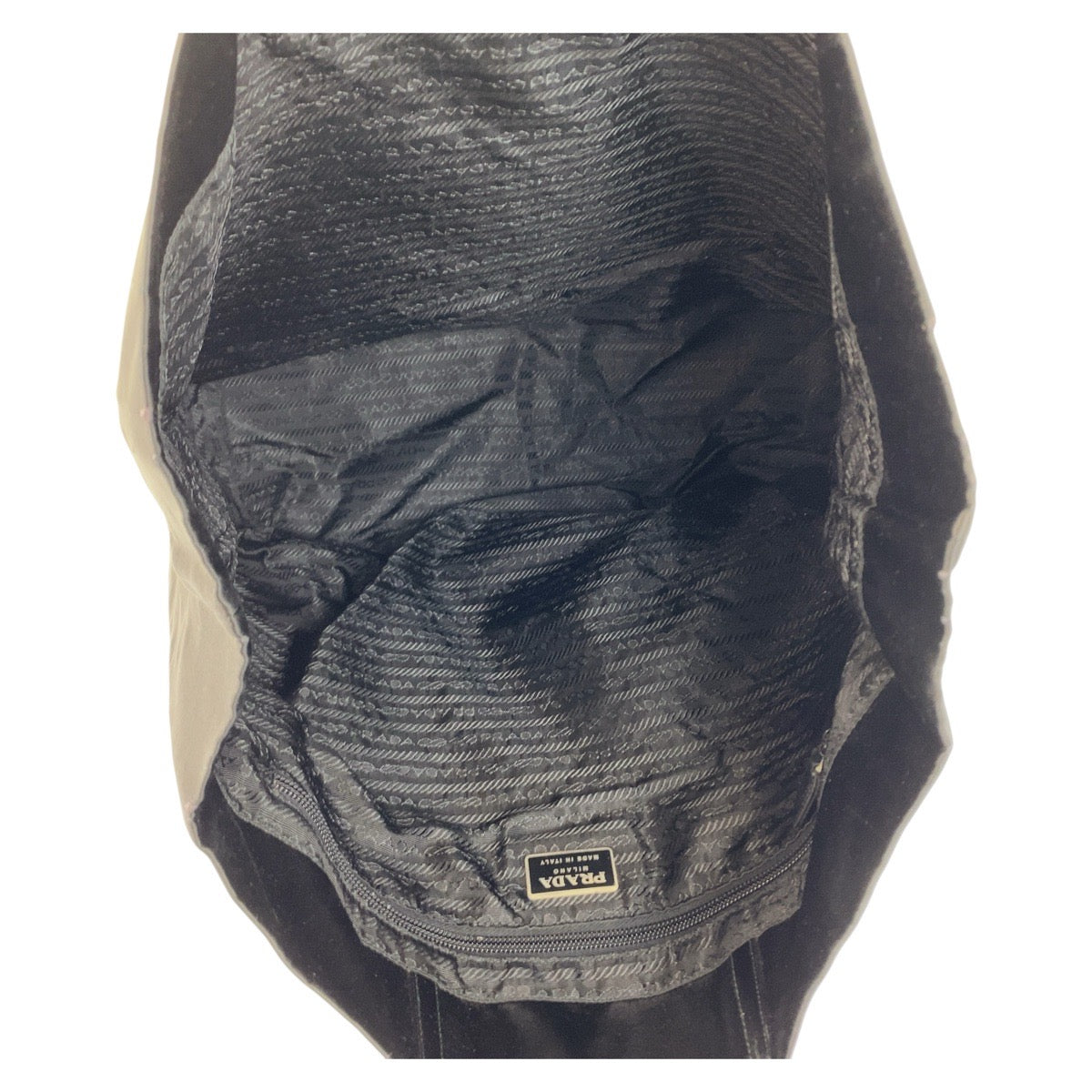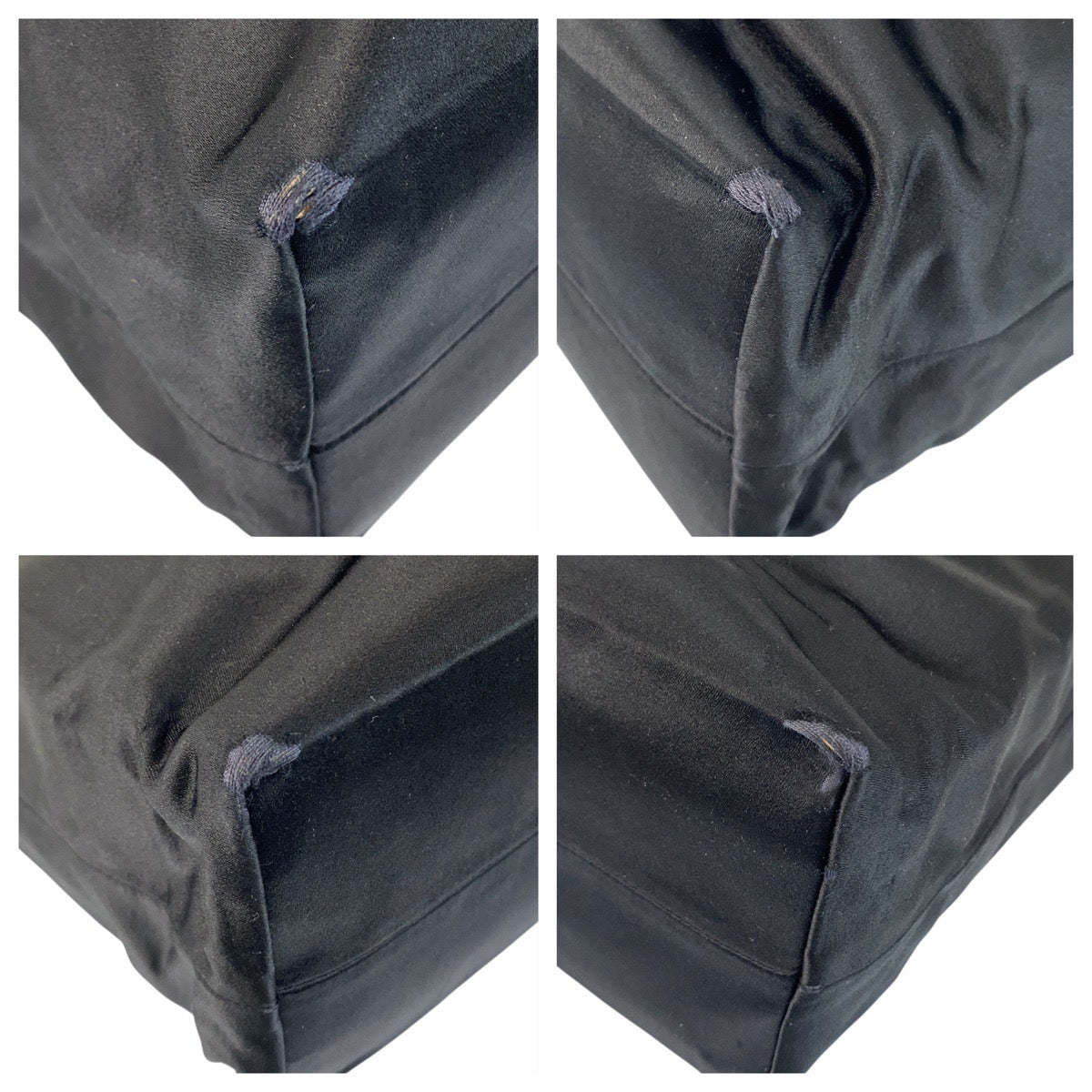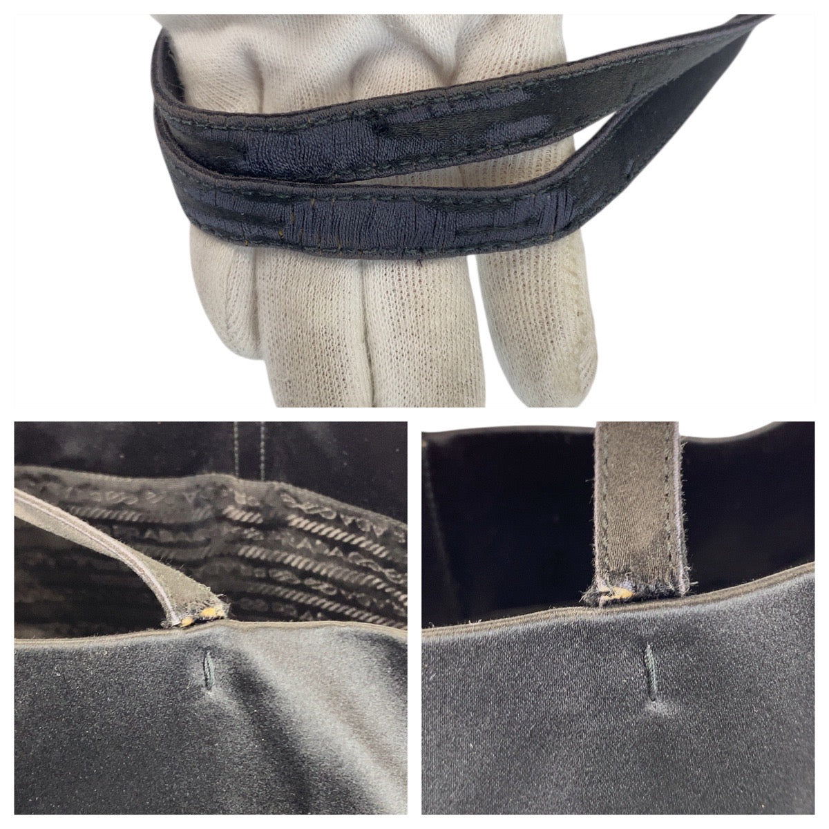 20481 PRADA プラダ 三角ロゴプレート ブラック 黒 シルバー金具 サテン トートバッグ レディース AB18