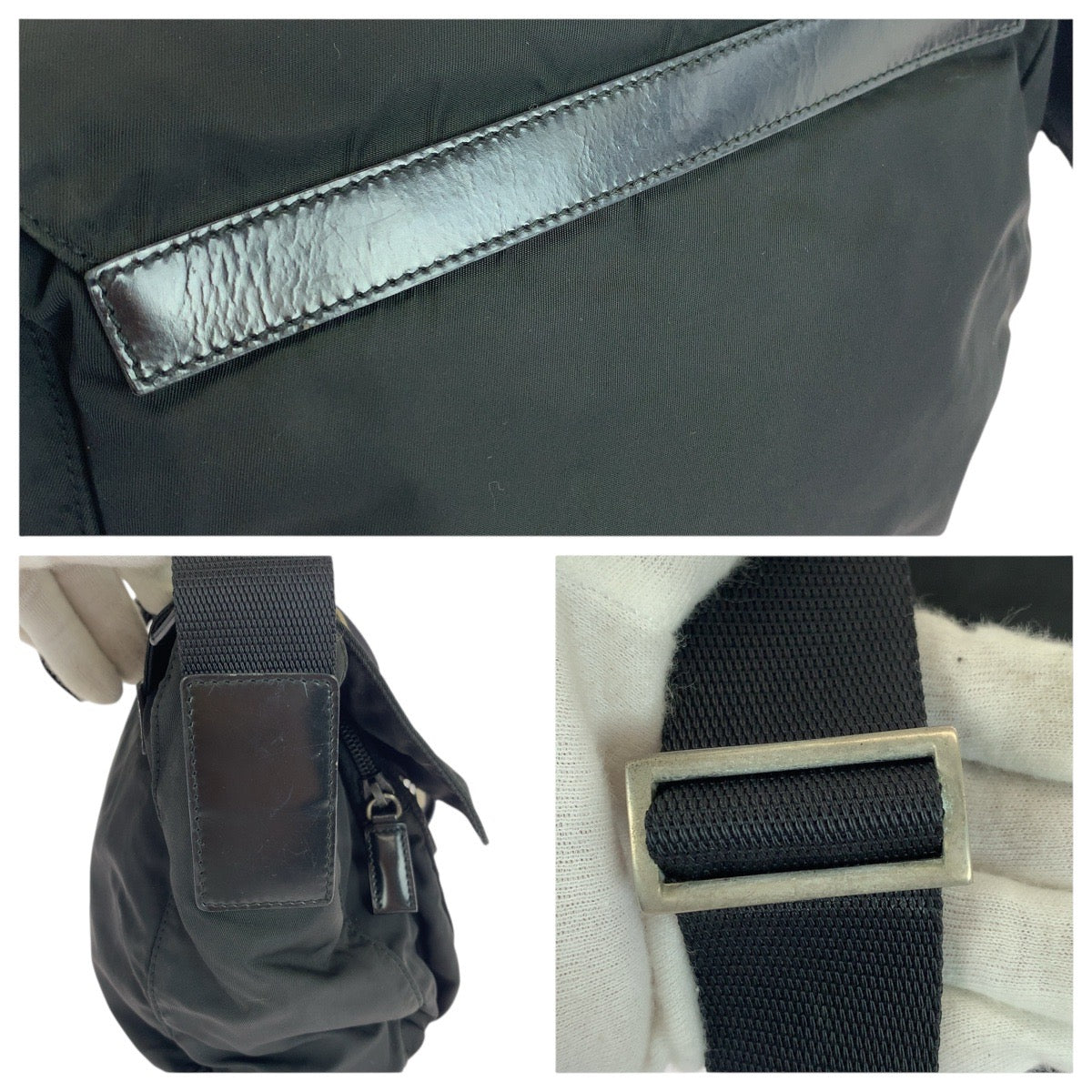 20811 PRADA プラダ テスート 三角ロゴプレート ブラック 黒 シルバー金具 ナイロン / レザー ショルダーバッグ メッセンジャーバッグ レディース AB30