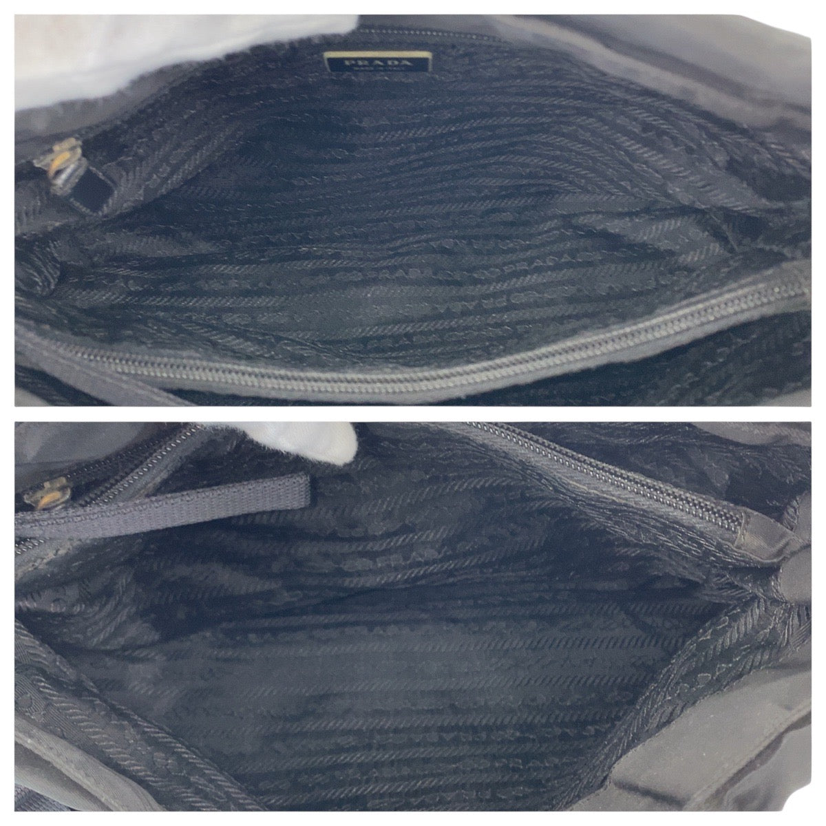 20911 PRADA プラダ テスート 三角ロゴプレート ブラック 黒 シルバー金具 ナイロン / レザー ショルダーバッグ レディース AB30