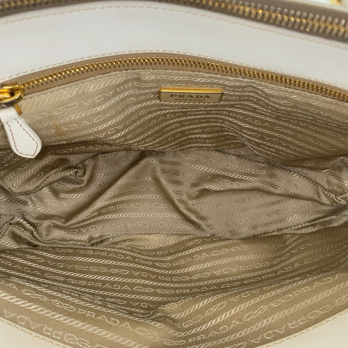 21098 PRADA プラダ サフィアーノ ガレリア ホワイト ゴールド金具 レザー トートバッグ ハンドバッグ レディース AB54