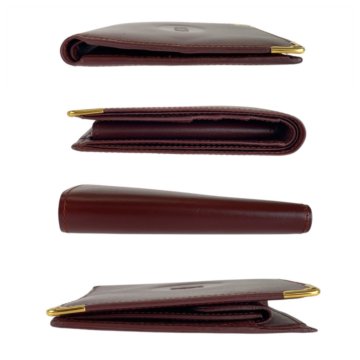 21314 CARTIER カルティエ マストライン ワインレッド ゴールド金具 レザー 折り財布 コンパクトウォレット 男女兼用 レディース ABP9
