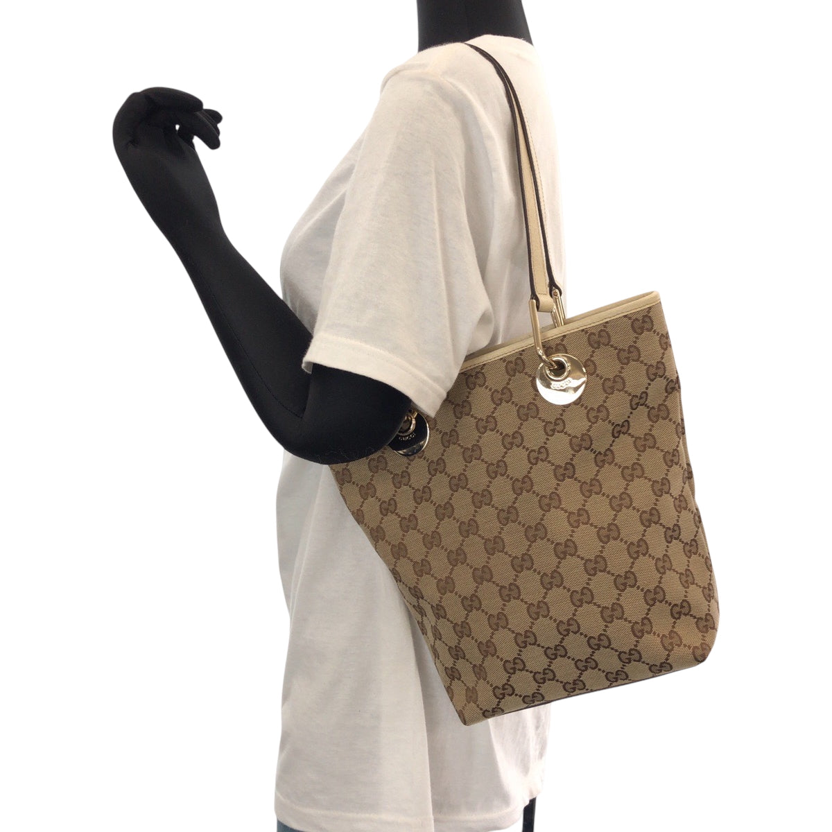 21391 GUCCI グッチ ブラウン アイボリー ゴールド金具 GGキャンバス 120840 トートバッグ ショルダーバッグ レディース A39