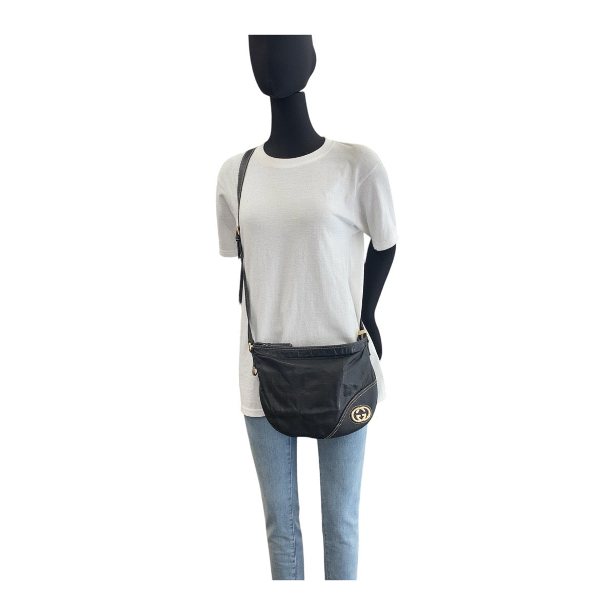 21415 GUCCI グッチ インターロッキング ブラック 黒 マルチカラー ゴールド金具 レザー 169998 斜め掛け ショルダーバッグ レディース AB39